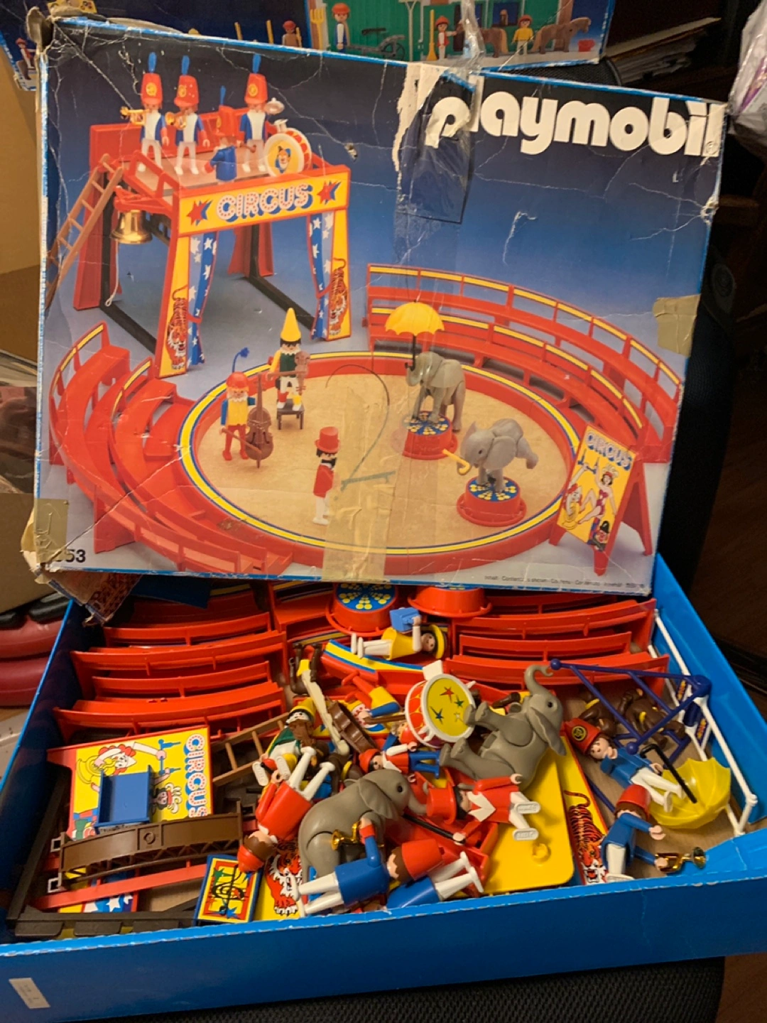 Selling a Playmobil circus set. It comes with a variety of figures and pieces to create your own circus scene. The box shows some wear, but all the pieces are included for hours of fun!