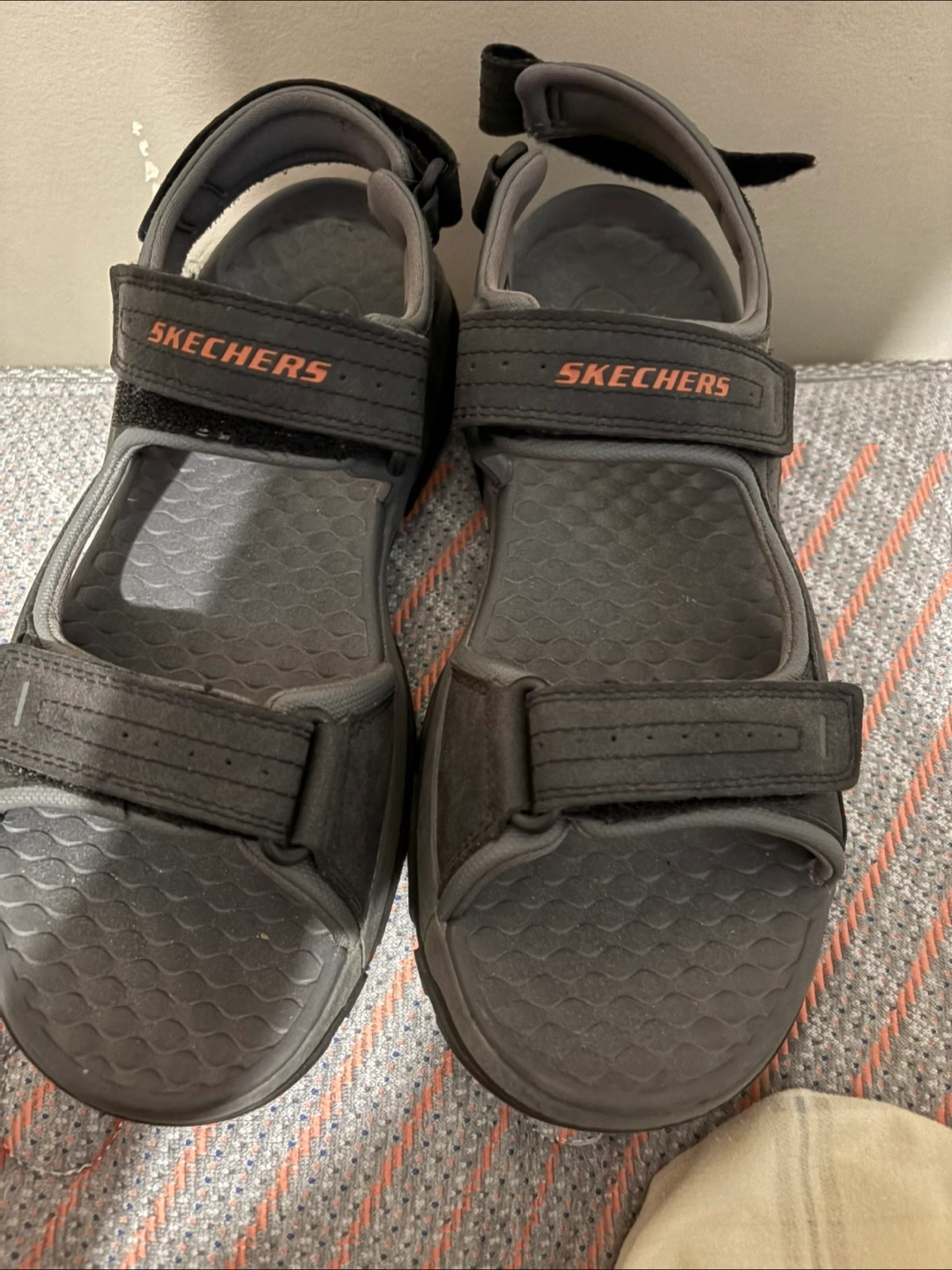 Selling a pair of Skechers sandals in size 11. They are in great condition and ready for a new home! The model number is 204105 with a color code of BLK.