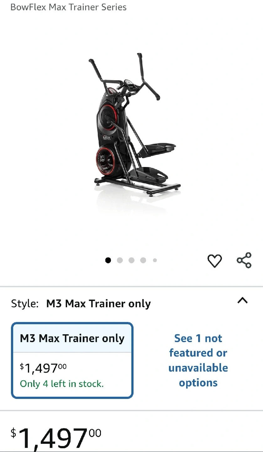 I'm selling a Bowflex M3 Max Trainer elliptical machine. It's in great condition! ■ It comes with the heart rate monitor strap, lubricant and spare part. ■ Sells on Amazon for $1497 ■ Fits easily in a corner.