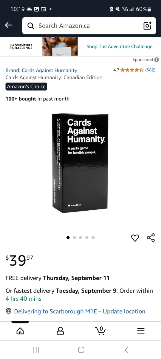 Selling a copy of Cards Against Humanity: Canadian Edition! It's a party game for horrible people, haha! Never opened still in the plastic wrapping.