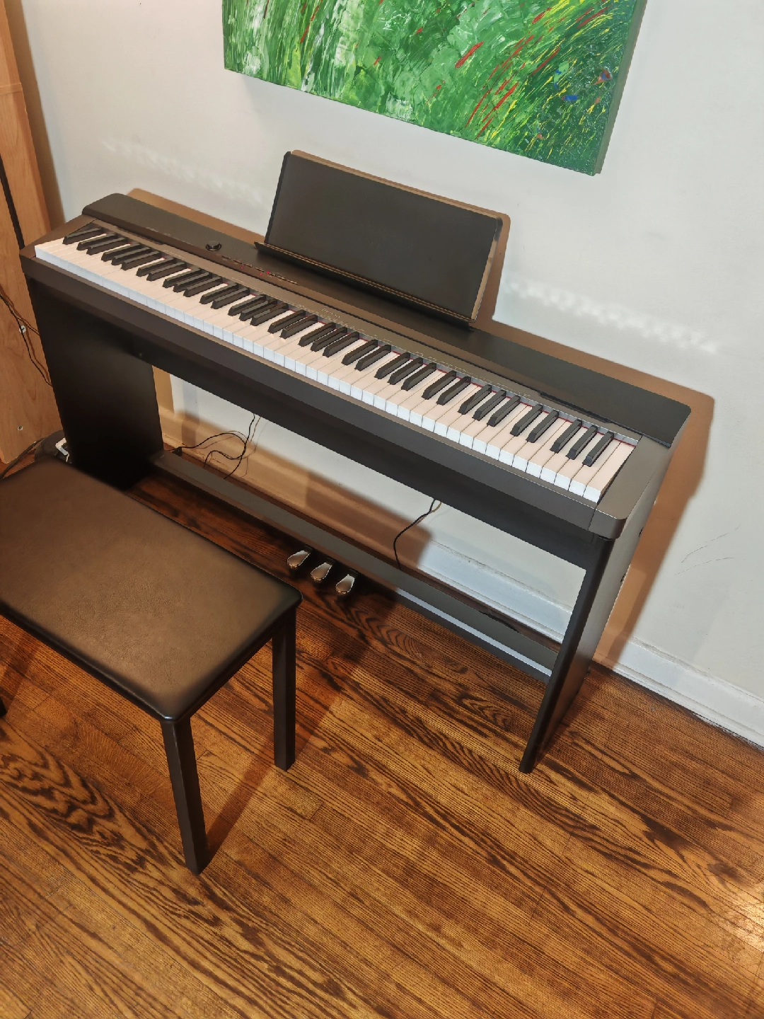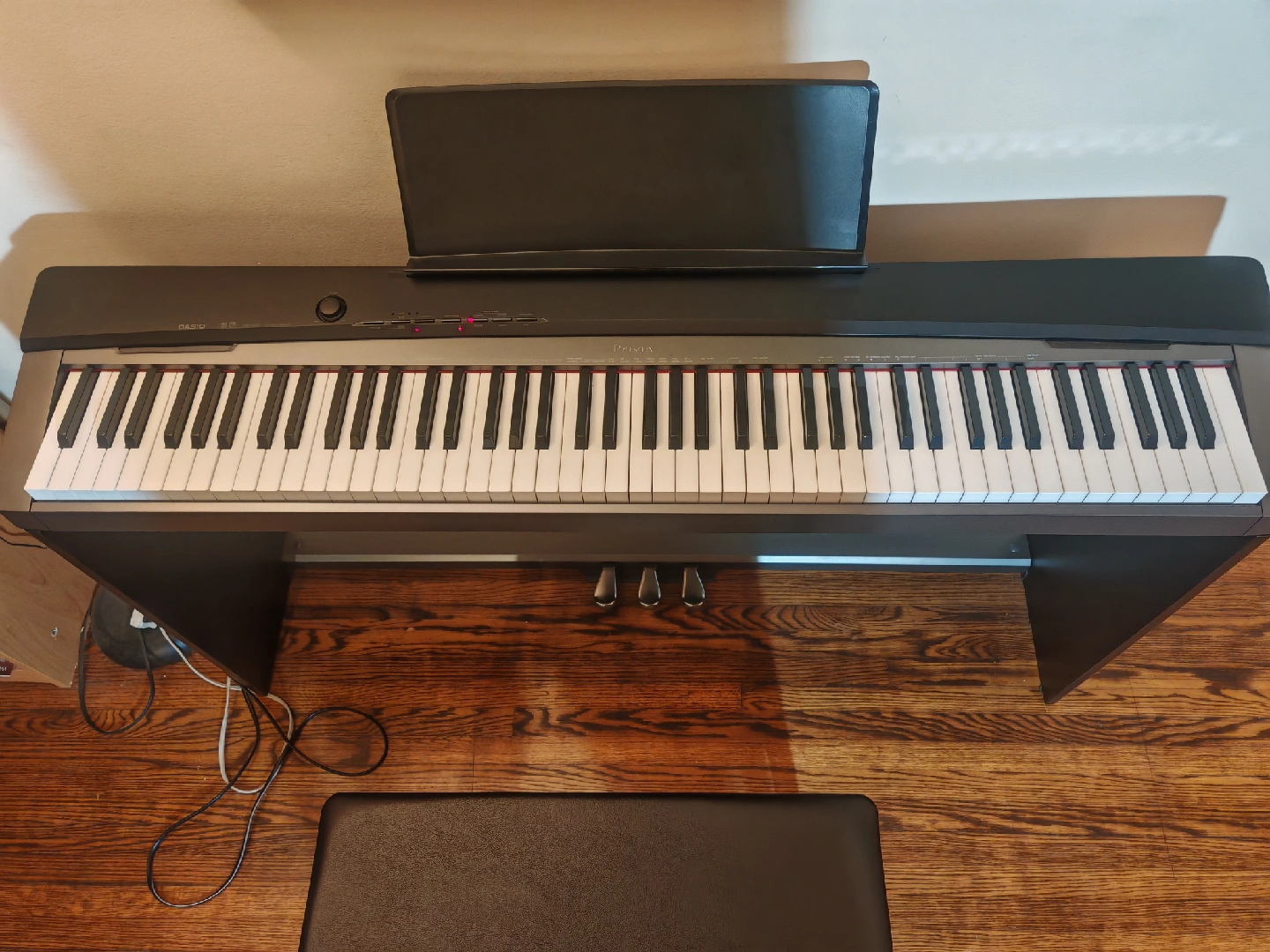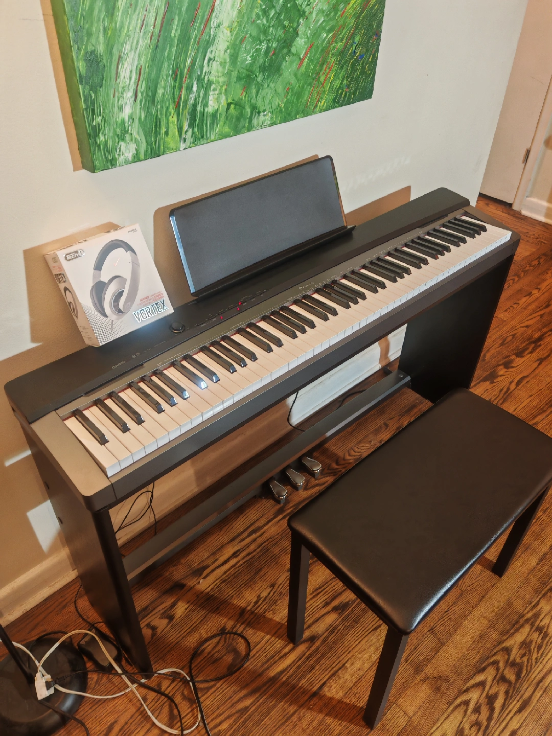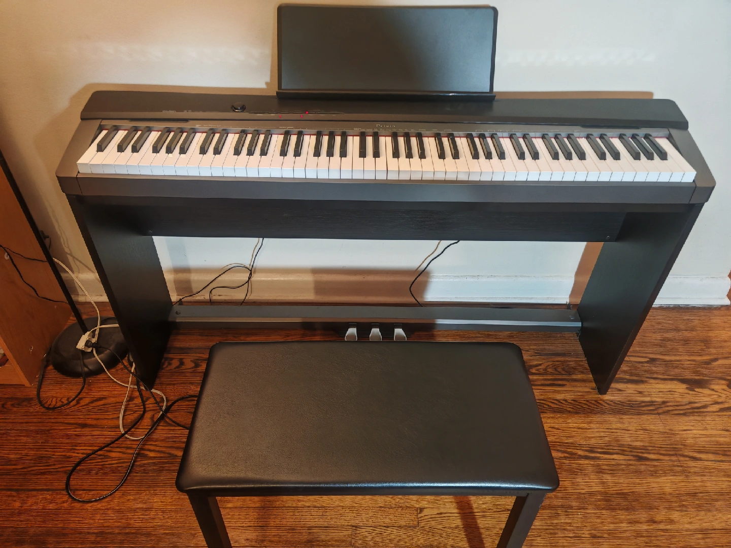 Selling a Casio Privia PX-130 digital piano. It comes with a bench, headphones, triple pedal, power adapter, and is in great condition. Perfect for beginners or experienced players alike!