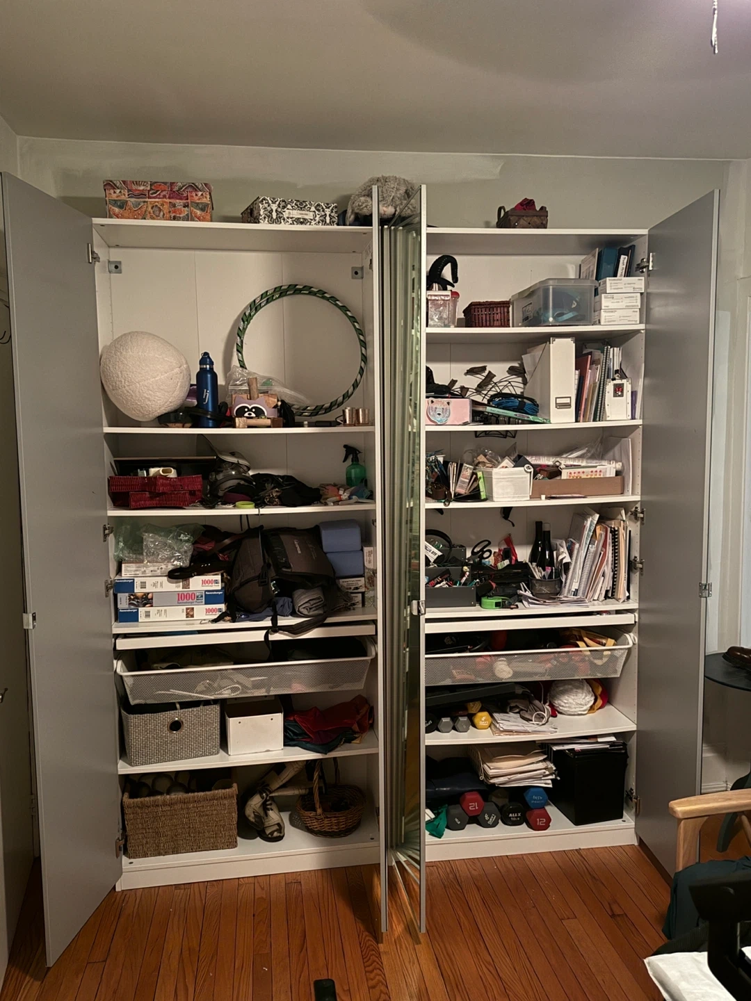 Two units of PAX in the 15” deep version. Shown open to show the shelving configuration. $250 each or $450 for both.
