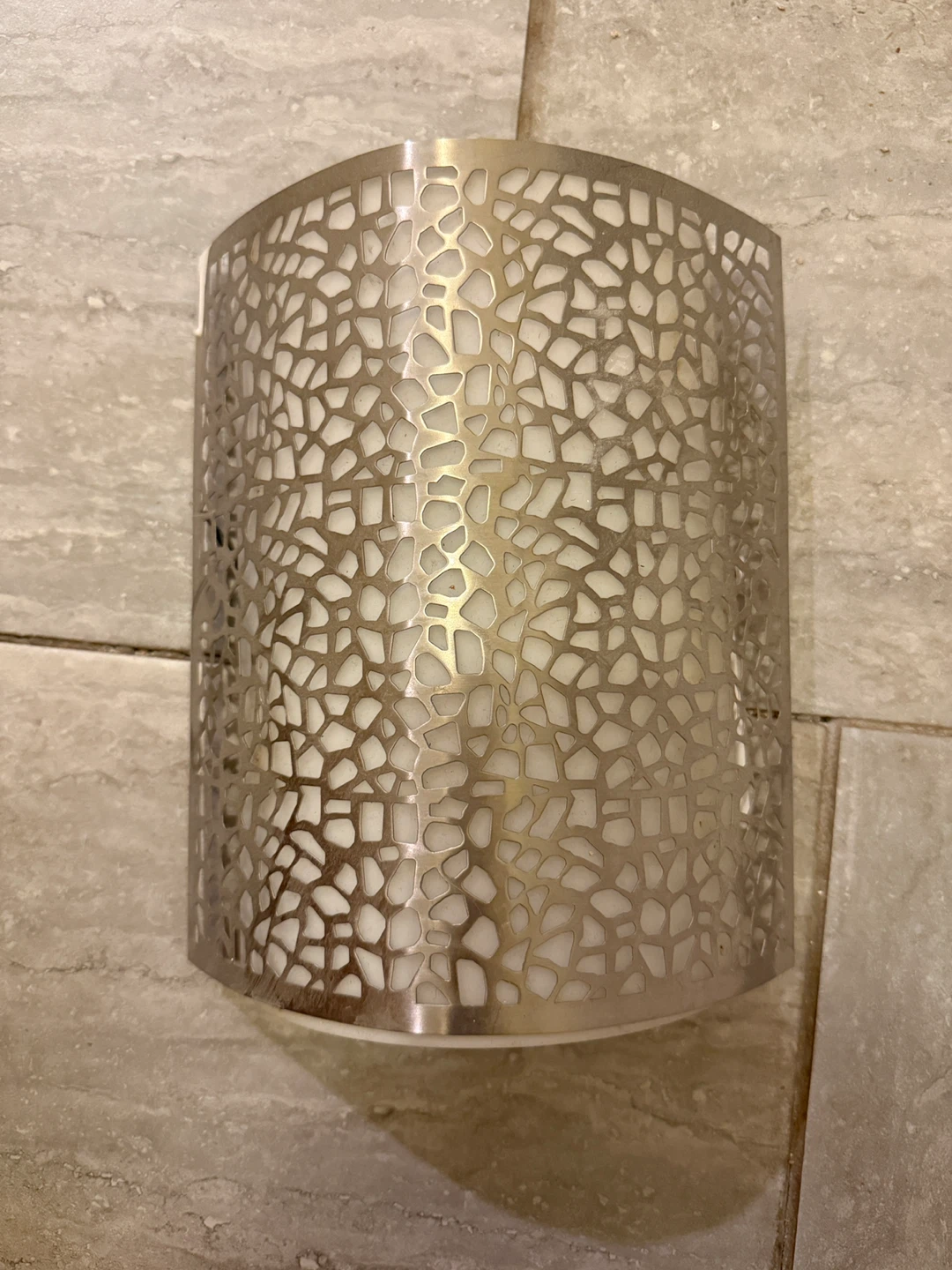 Selling a metal wall sconce! It has a unique cut-out design. It's in great condition and ready to brighten up your space