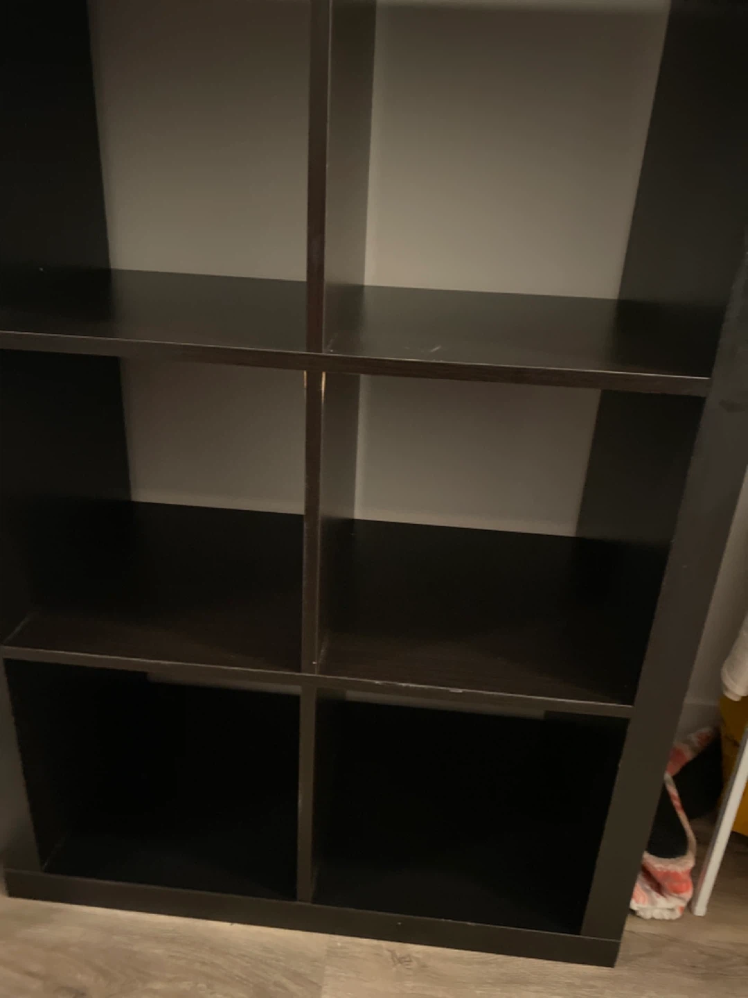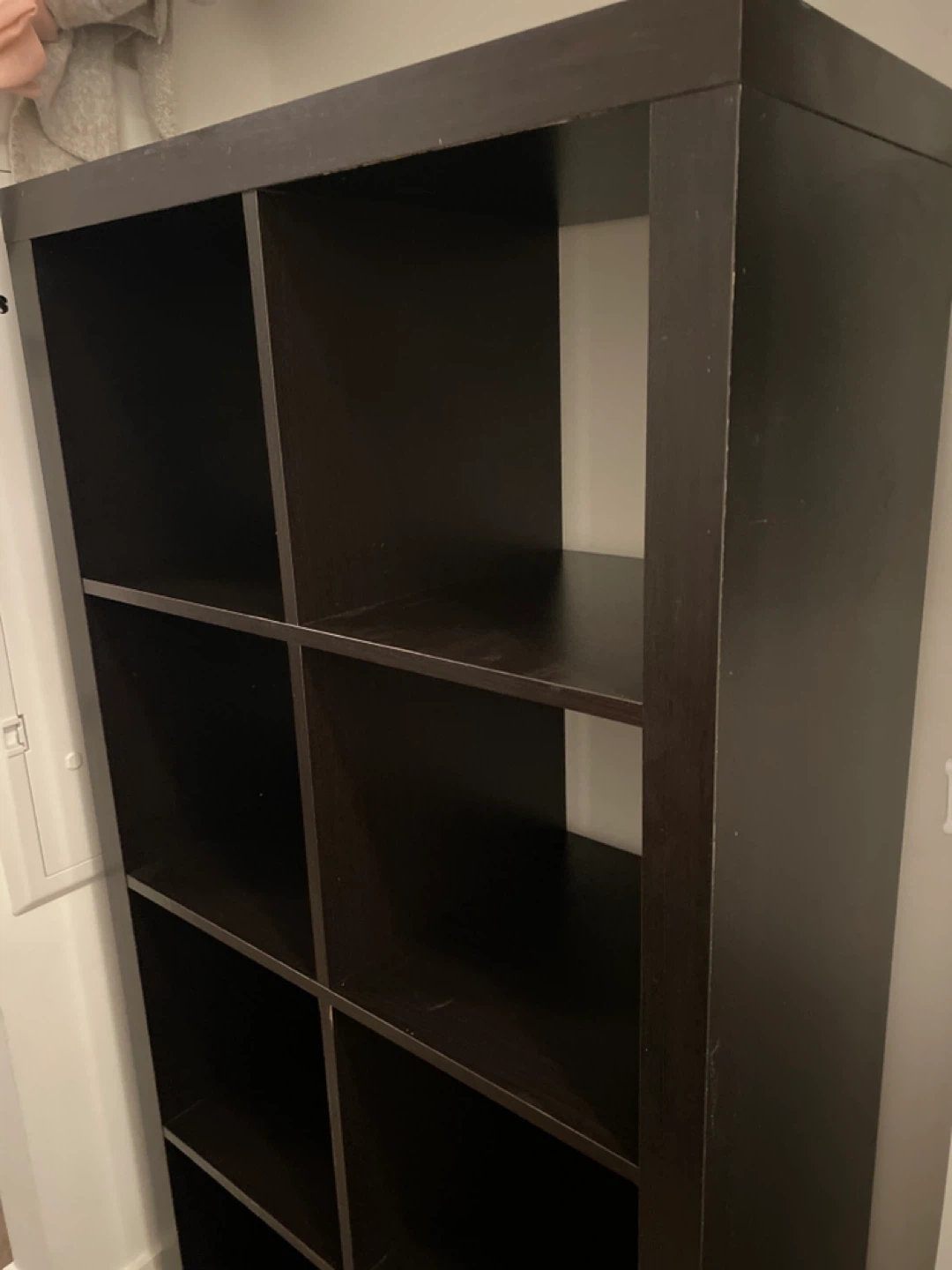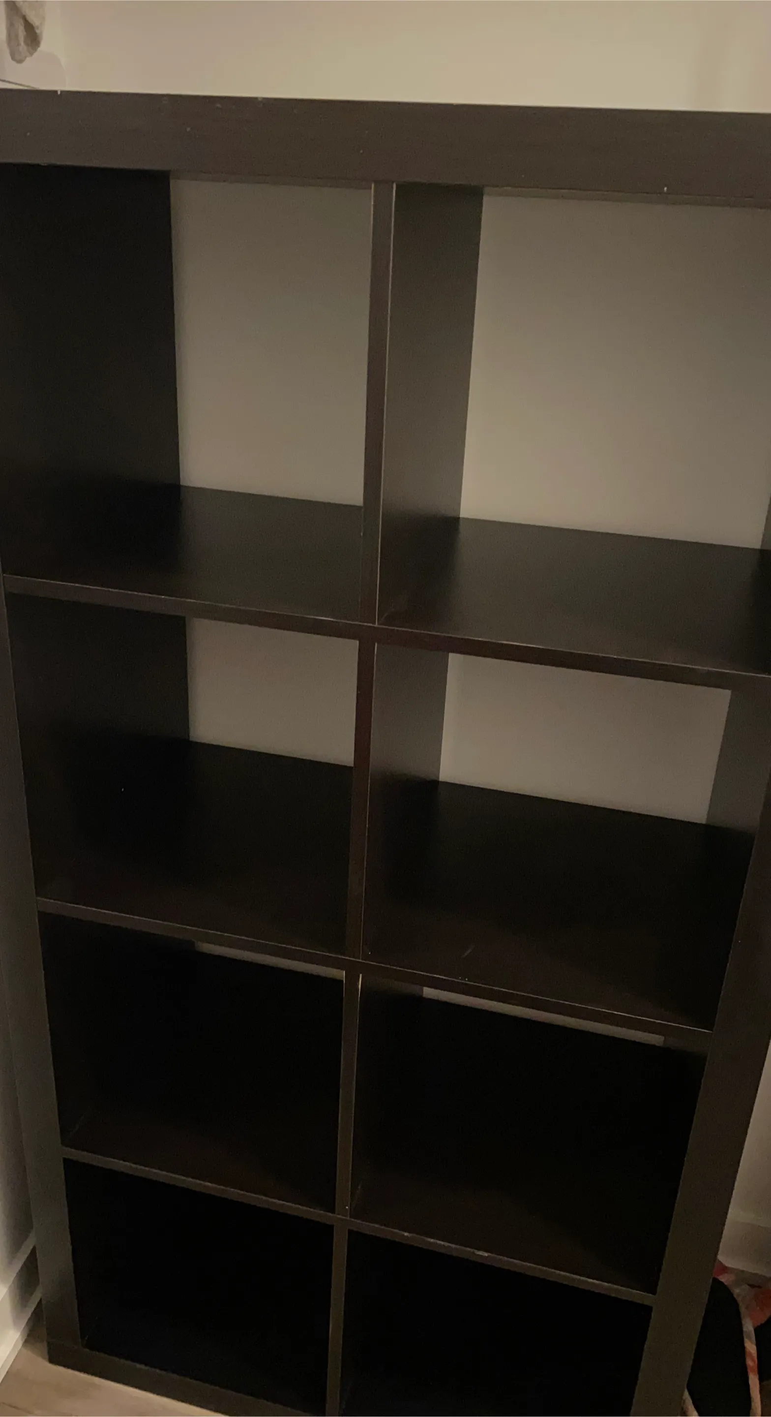Selling a dark brown shelving unit with 8 cubes. It's perfect for organizing books, decor, or storage bins. In good condition and ready for a new home!
