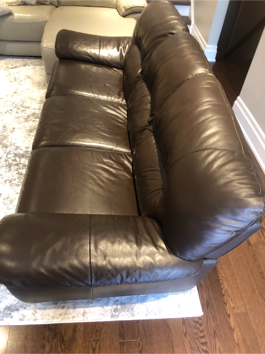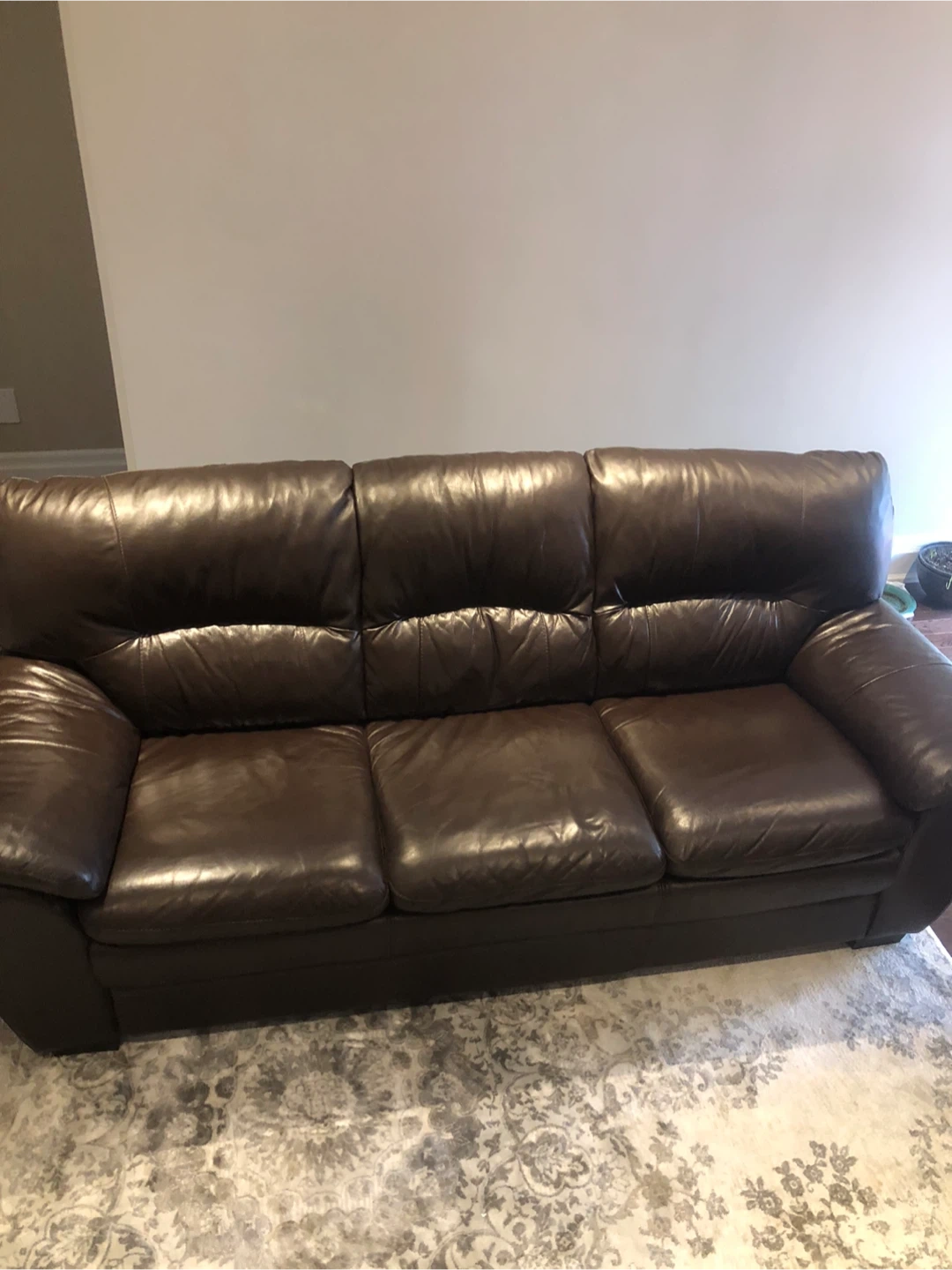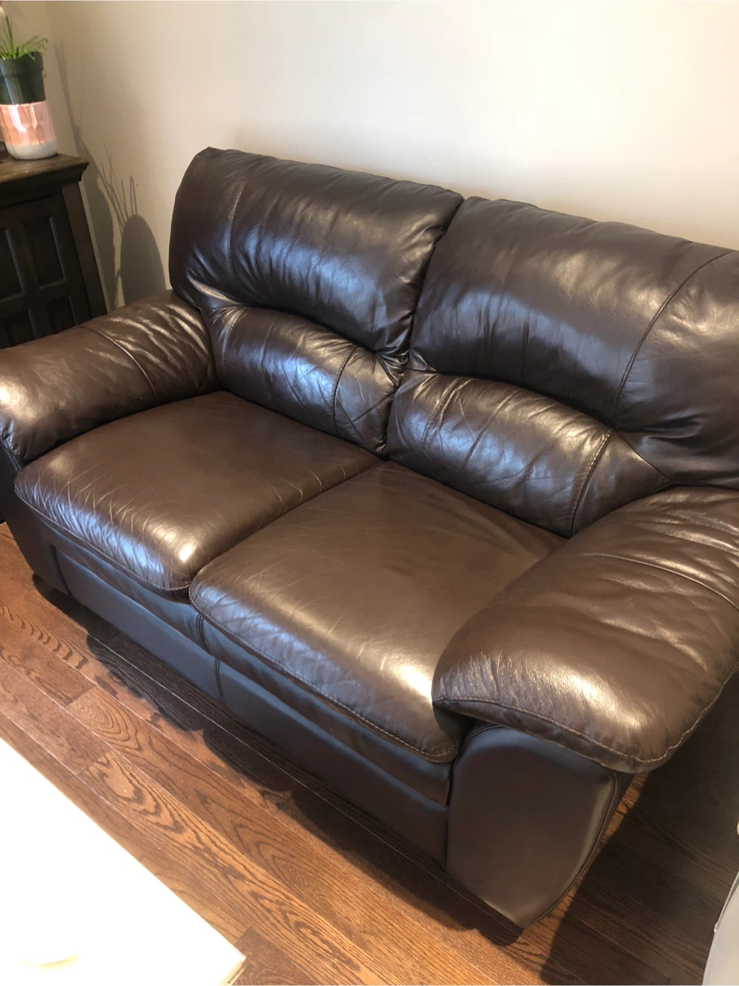 Leather Couch Threeseater and Loveseat from LEONS, genuine leather.