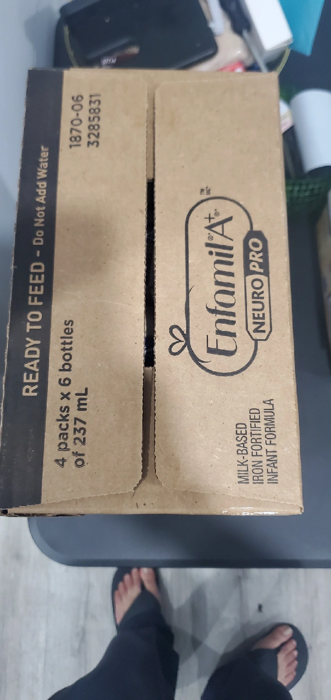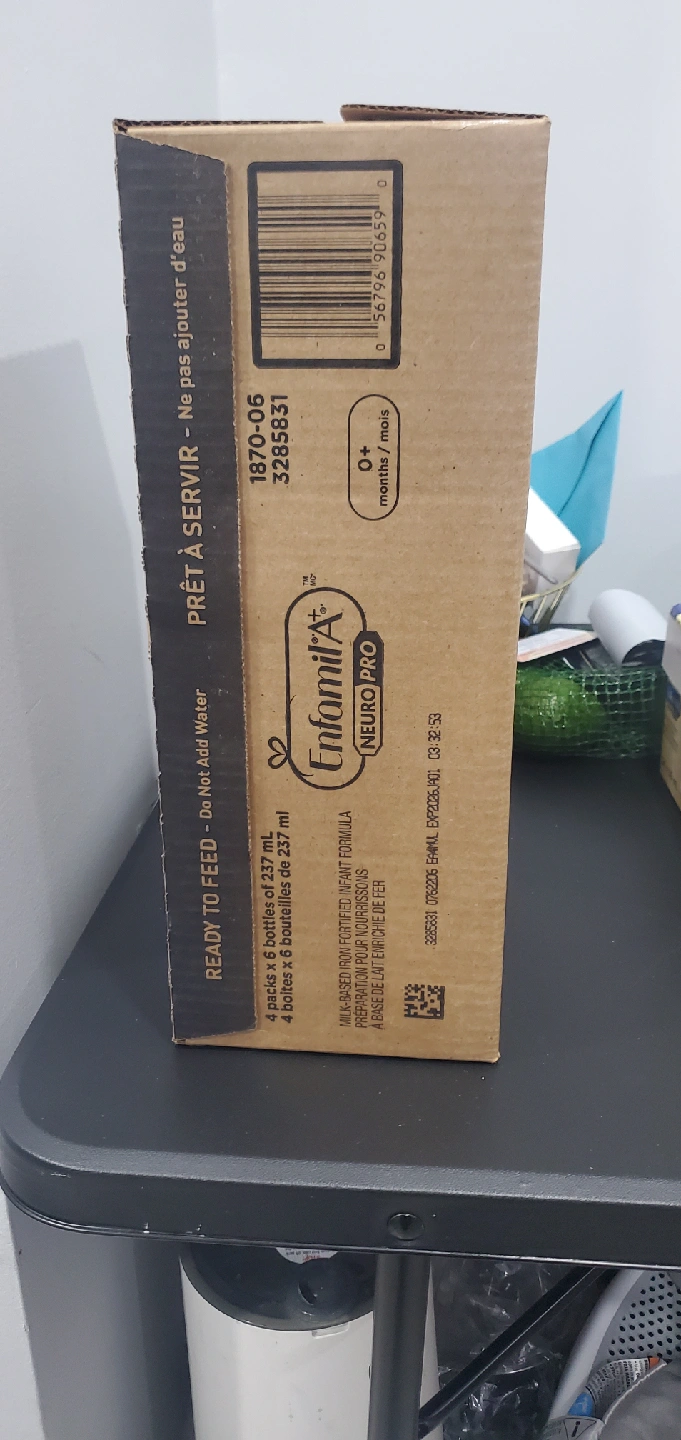 Selling a box of Enfamil A+ Neuropro infant formula. It contains 4 packs with 6 bottles each, with each bottle containing 237 mL of formula. Ready to feed, milk-based and iron fortified. Expiry date is 2026 January 01