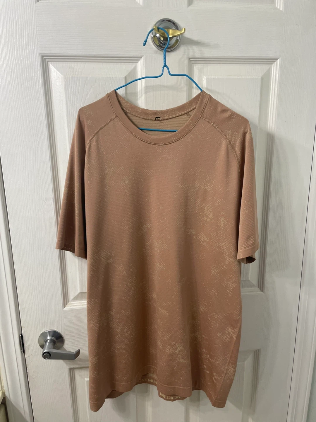 Selling a Lululemon men's t-shirt. It's a light brown color and in great condition. Perfect for workouts or casual wear!