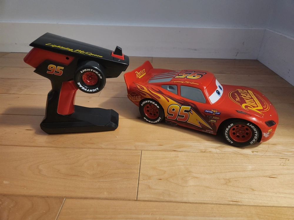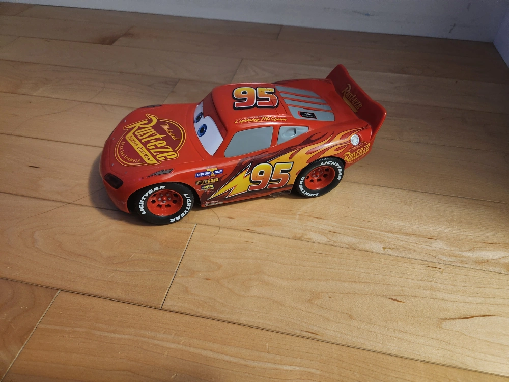 Selling a Lightning McQueen remote control car from Disney Pixar's Cars. It's in great working condition - no issues. Batteries included. Comes from a smoke and pet free home.