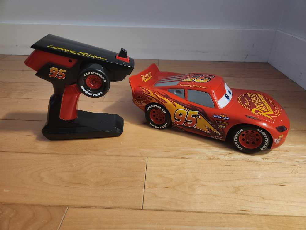 Selling a Lightning McQueen remote control car from Disney Pixar's Cars. It's in great working condition - no issues. Batteries included. Comes from a smoke and pet free home.