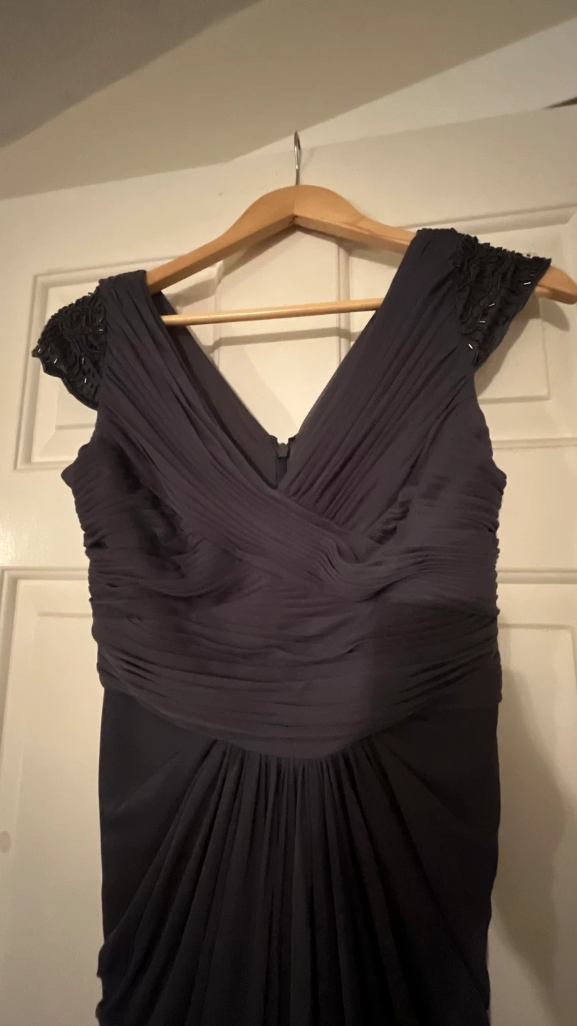 Selling an Adrianna Papell dress in size 2. It's a beautiful grey dress with beaded detailing on the shoulders. Perfect for a formal event!