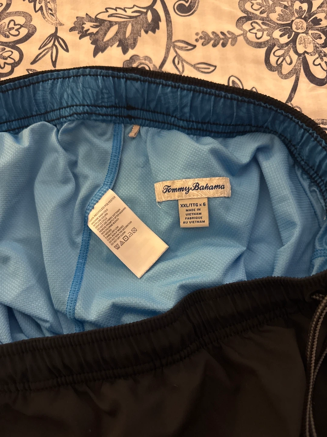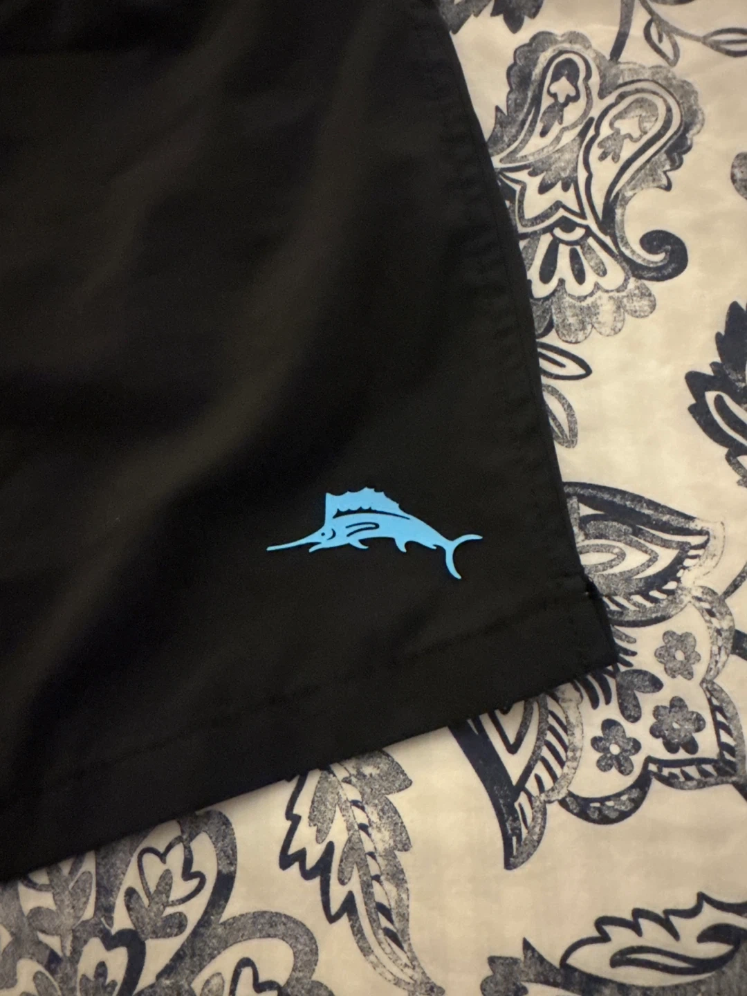 Selling a pair of Tommy Bahama swim trunks in black. They're in great shape and ready for the pool or beach! The shorts feature a drawstring waist and a back pocket.