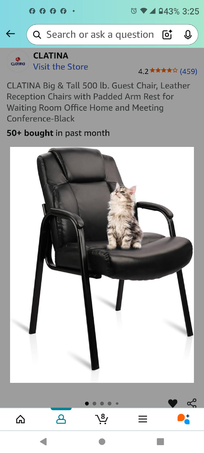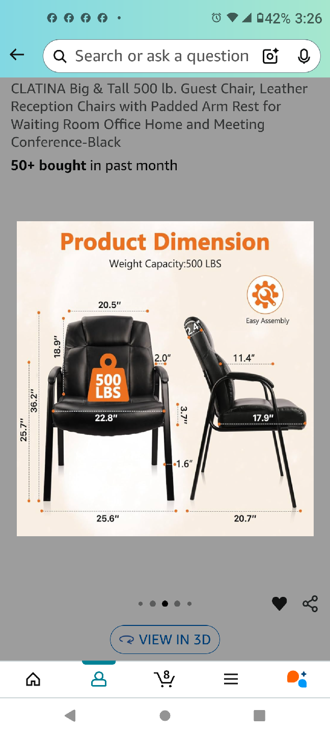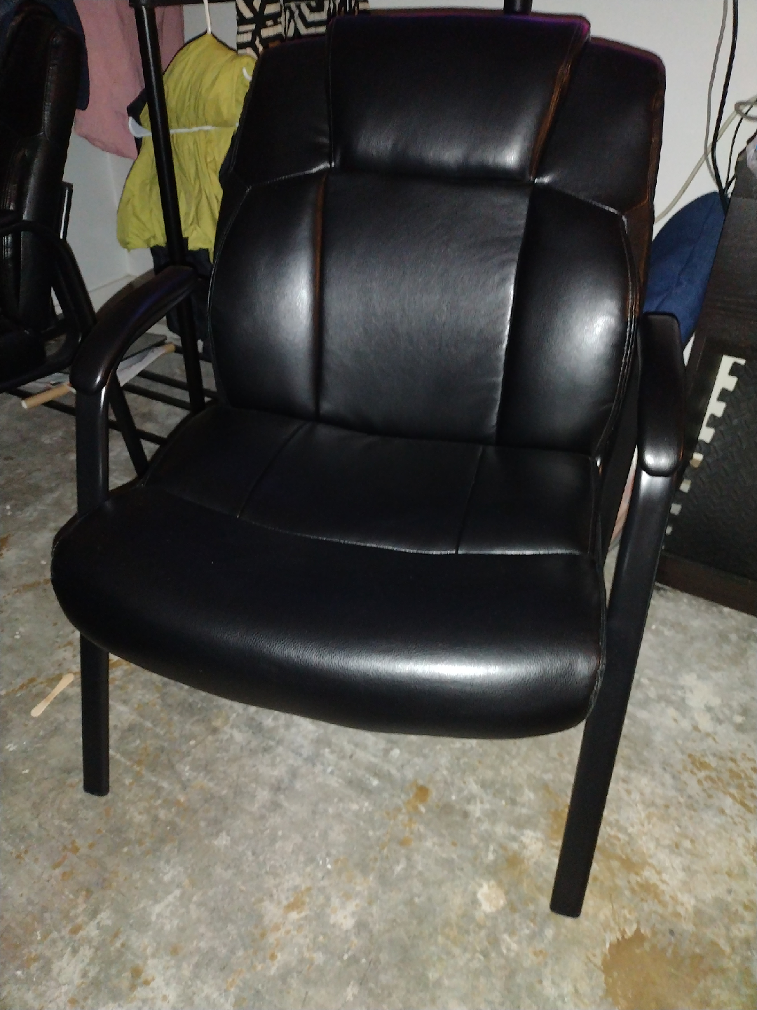 Selling a CLATINA Big & Tall 500 lb guest chair. It's a leather reception chair with padded armrests, perfect for a waiting room, office, home, or meeting conference. The chair is black and designed to support up to 500 lbs!