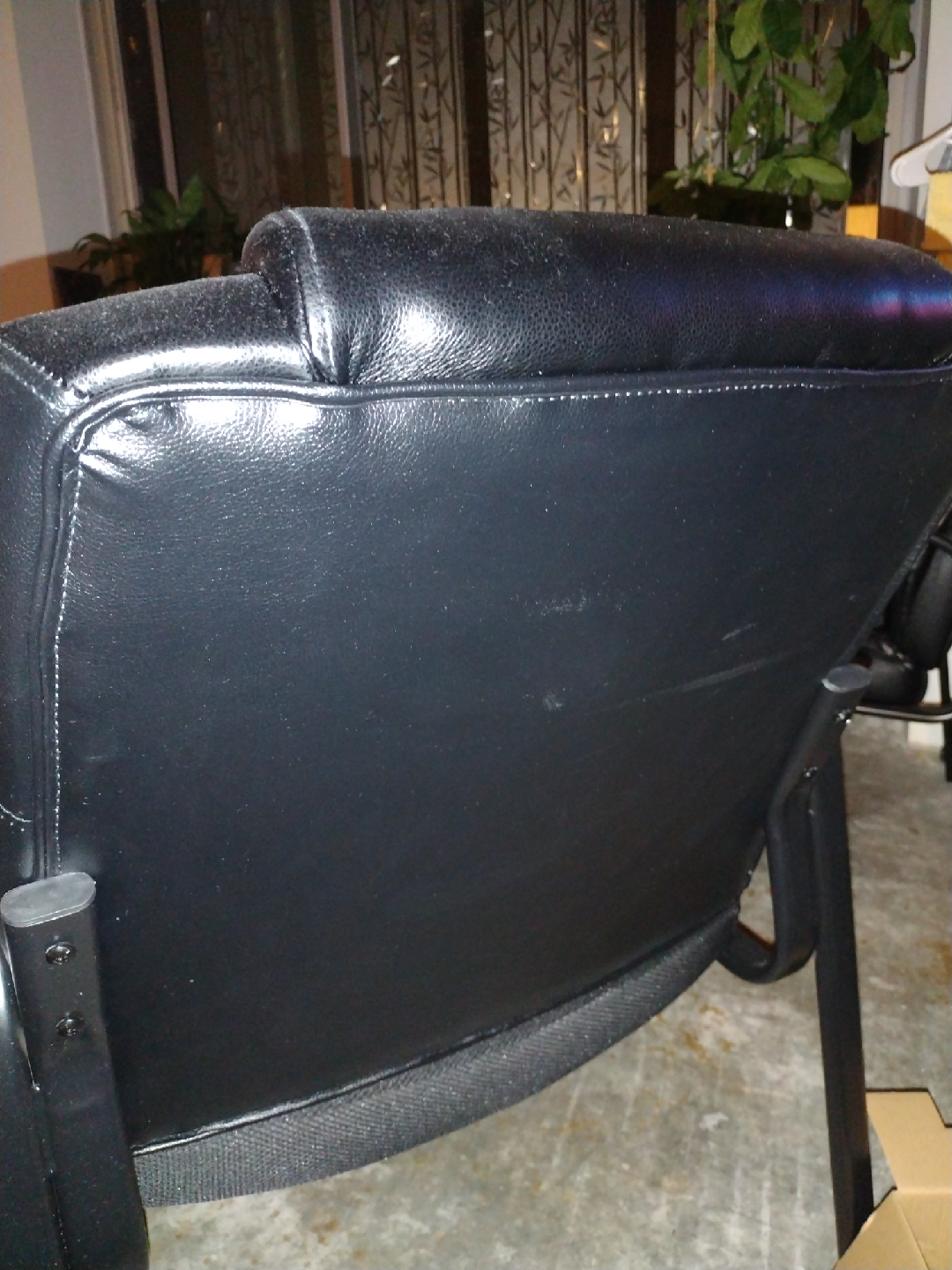 There's a tear in the covering under the seat, but it's not an issue. It isn't visible unless the chair is upside down. I just don't have room for it.