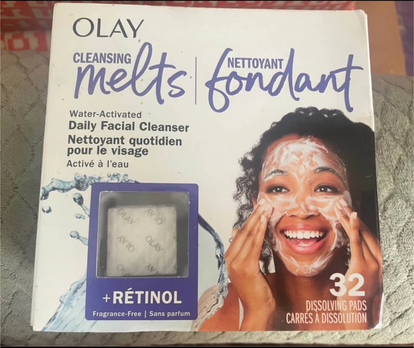 Selling Olay Cleansing Melts + Retinol, which includes 32 dissolving pads. These water-activated daily facial cleanser pads are fragrance-free. They cleanse, tone, and refresh your skin in a 3-in-1 formula. Great for a quick and easy skincare routine!