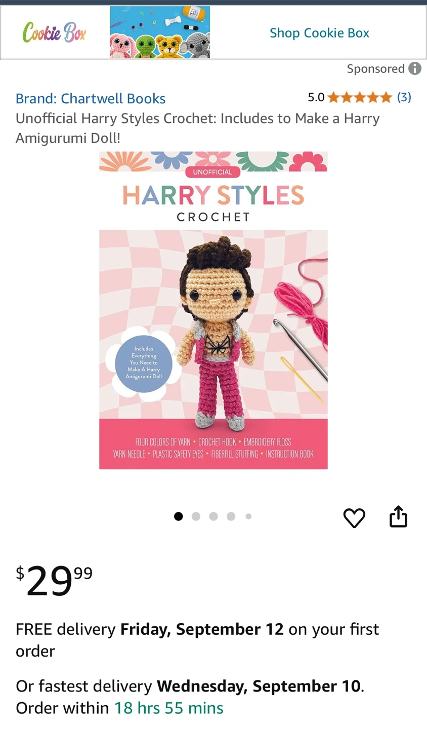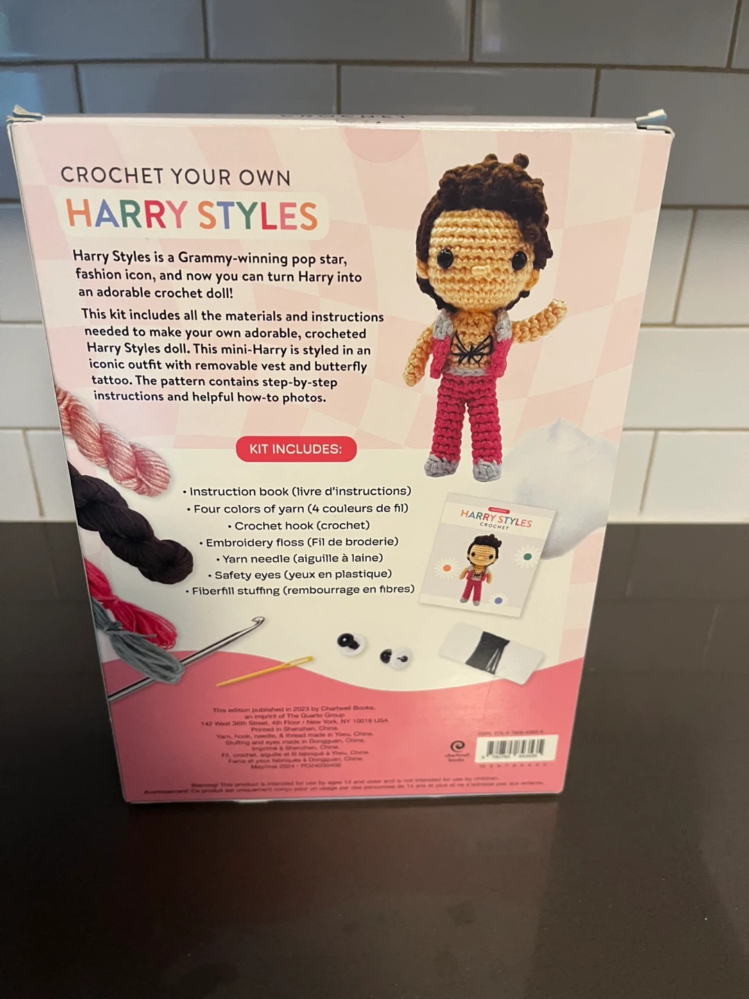 41Get ready to crochet your own Harry Styles doll! This kit includes everything you need to make a mini-Harry with his iconic outfit, removable vest, and butterfly tattoo. Pick up in Utopia