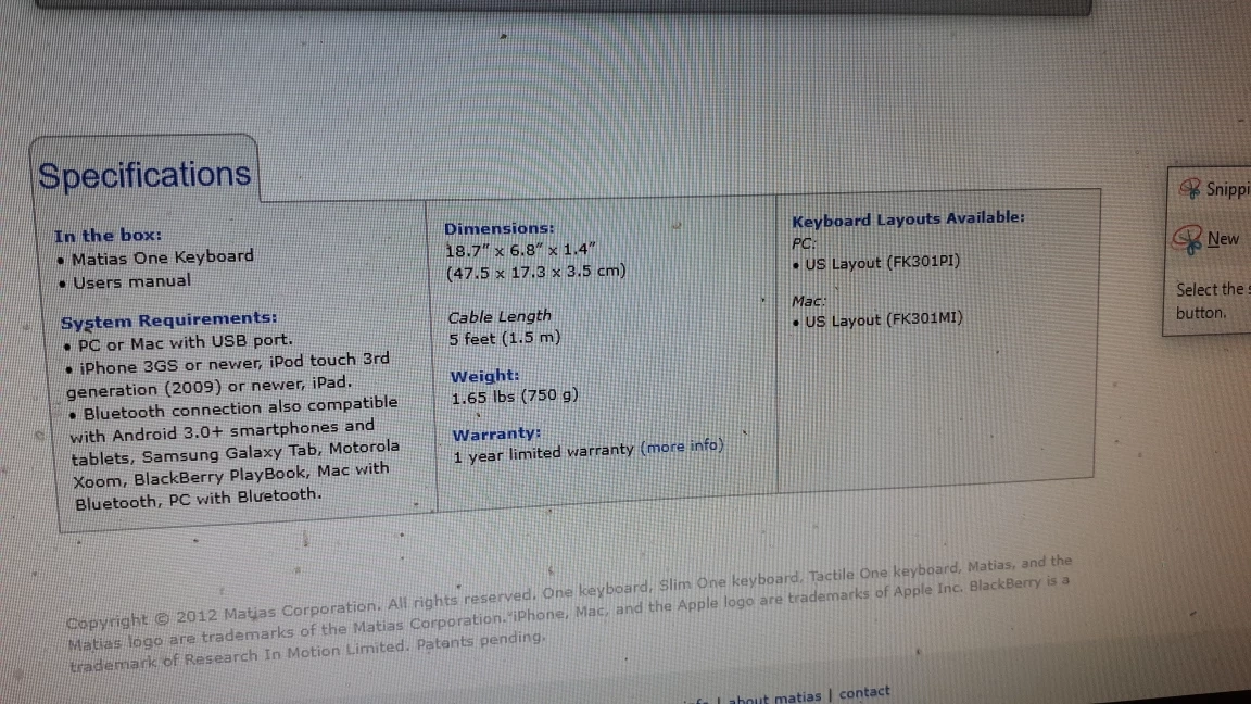 Matias One Keyboard for iPhone/PC/Mac