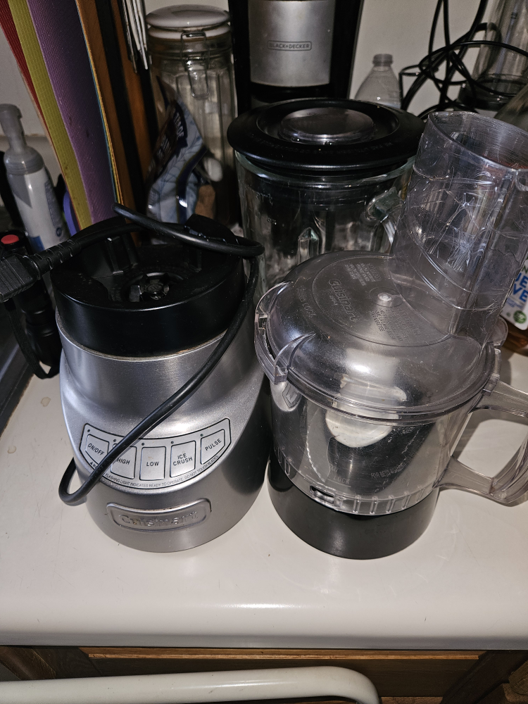 I'm selling a Cuisinart mini food processor and blender! It's in great condition and ready for a new home. Perfect for small tasks and easy to store. Small crack on food processor but still works great. I was gifted a bigger one for my business.