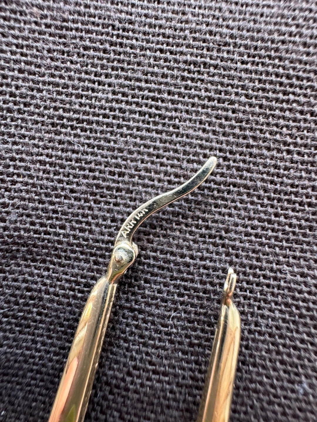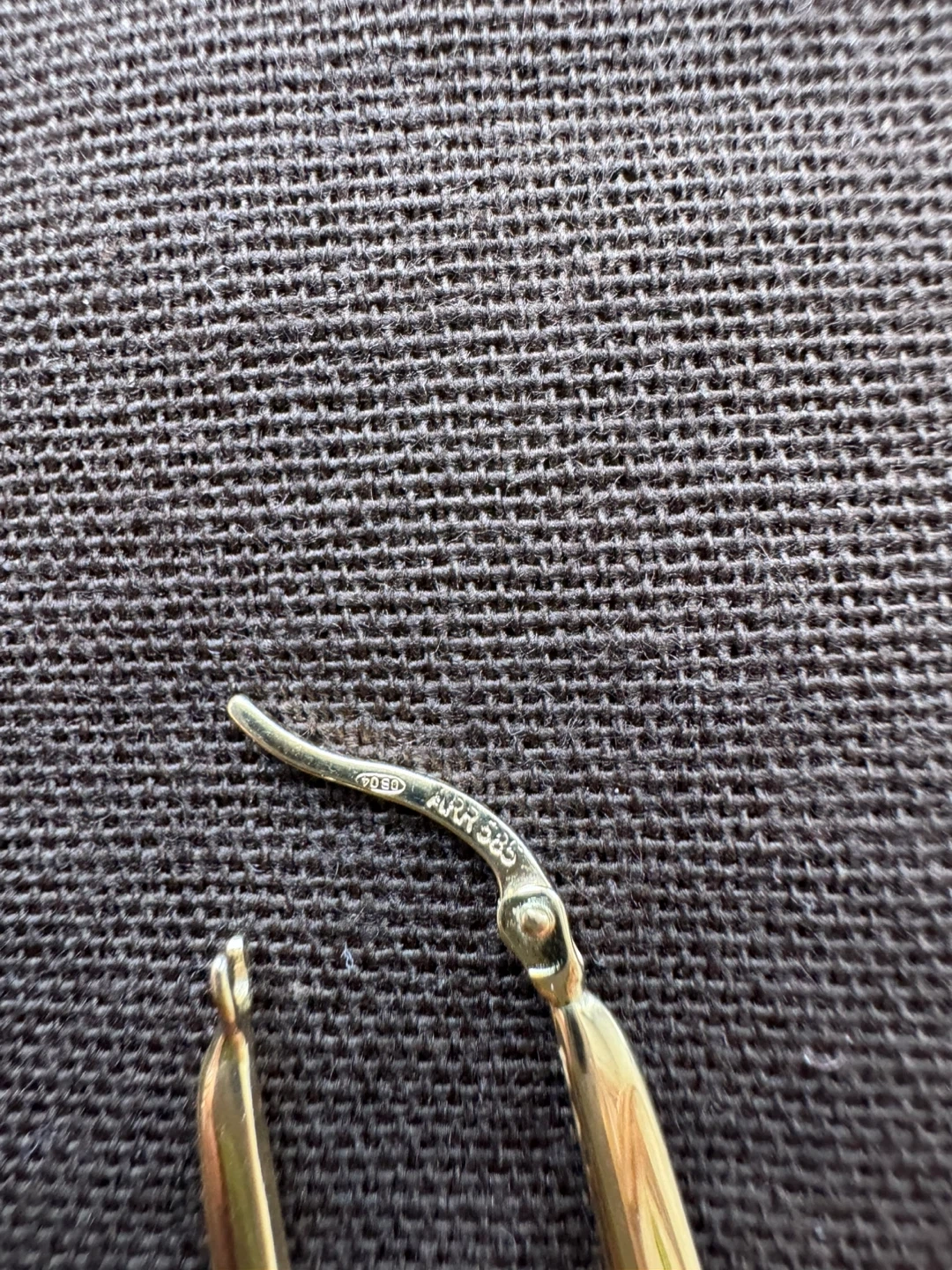 Selling a pair of 14 k gold earrings marked ARR 585. They're in excellent condition and ready for a new home!