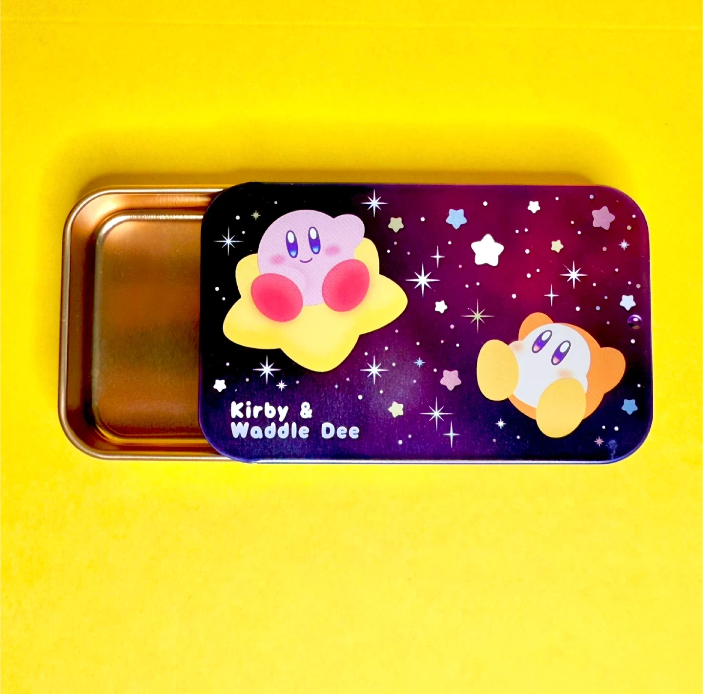 Cute Kirby & Waddle Dee mint tin box! Perfect for storing your favorite mints, pills, or whatever you choose. Dim 3”x2”x0.5”. Features colorful designs of Kirby and Waddle Dee on a starry background