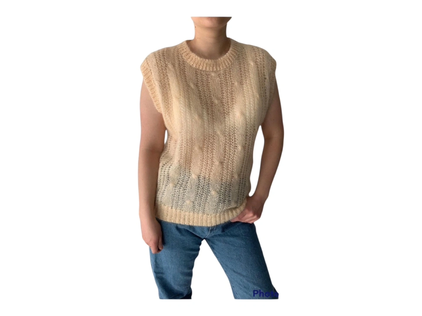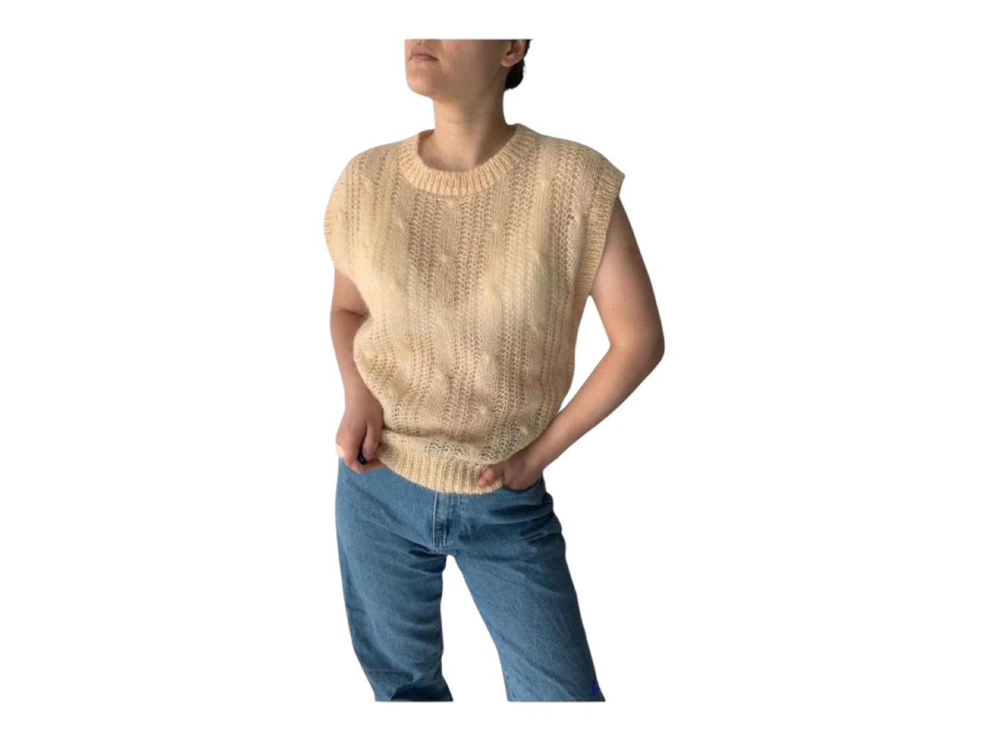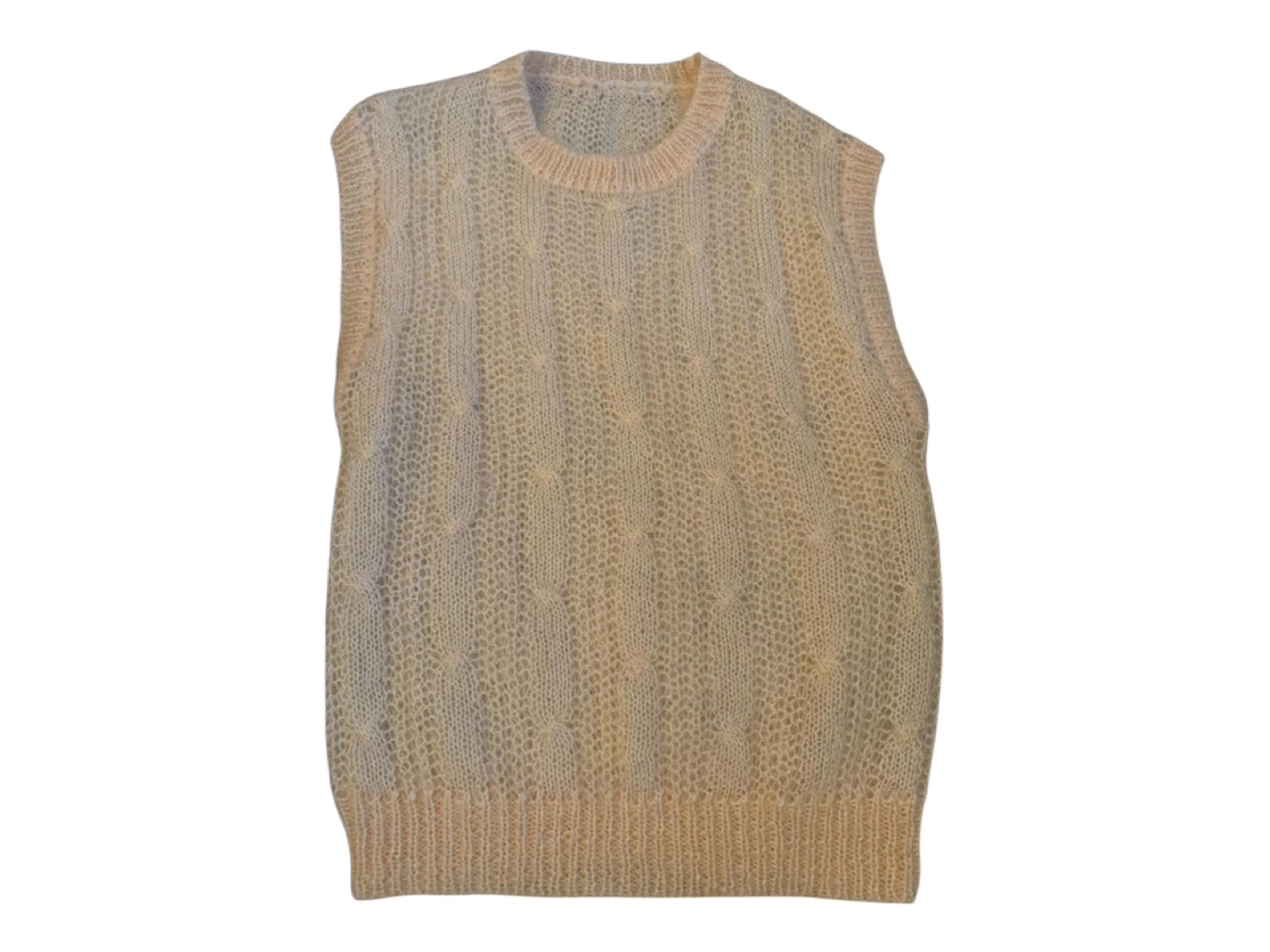 RARE Vintage 80s Hand Knit Oversized Wool Hand Knit Sleeveless Vest Cream S/M/L