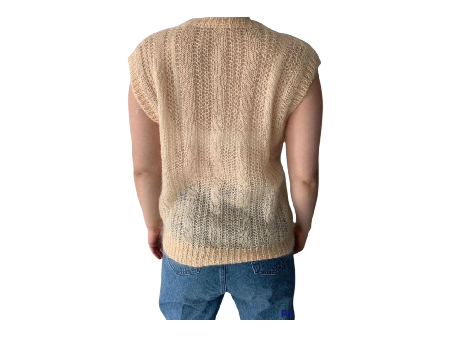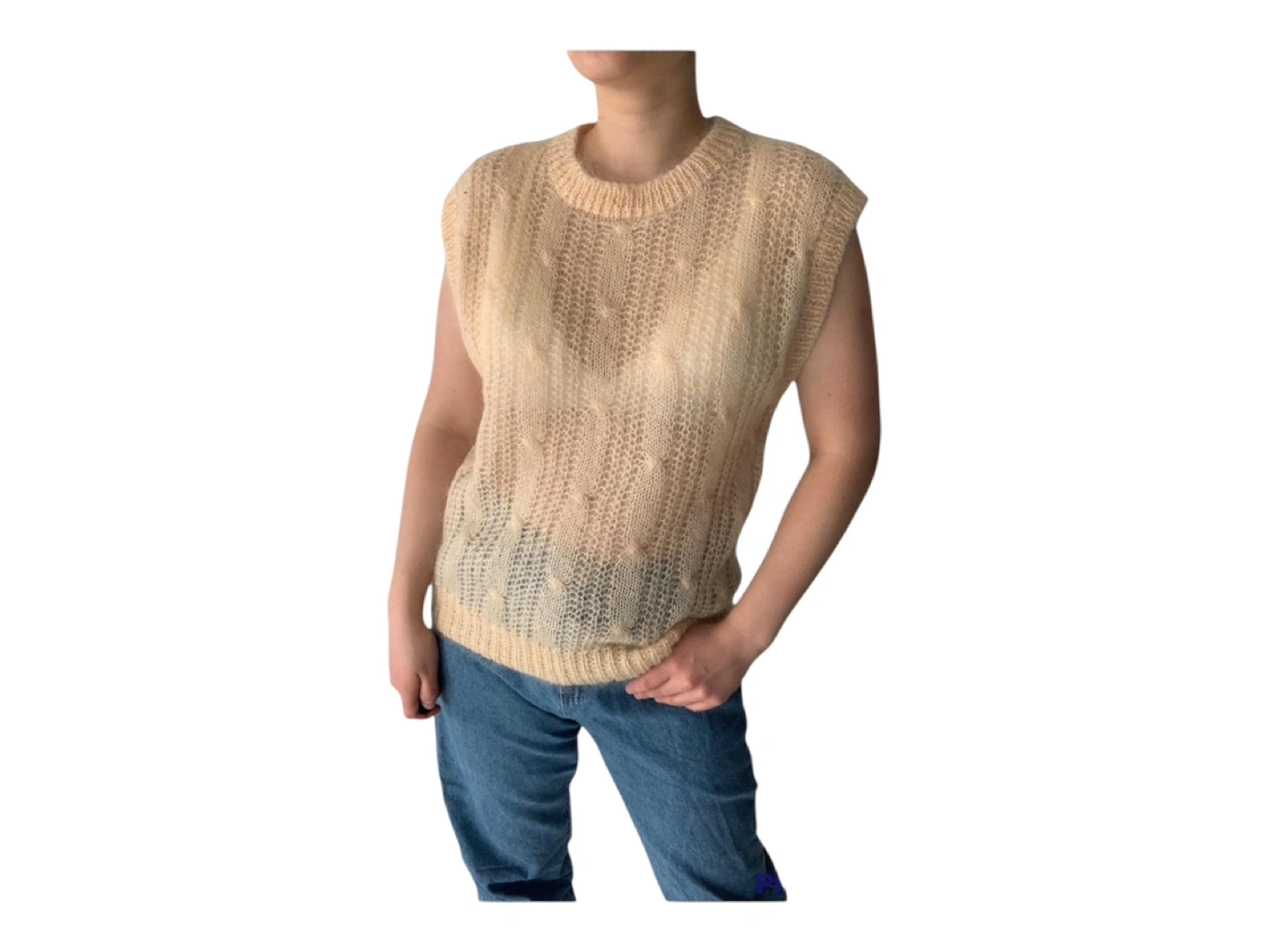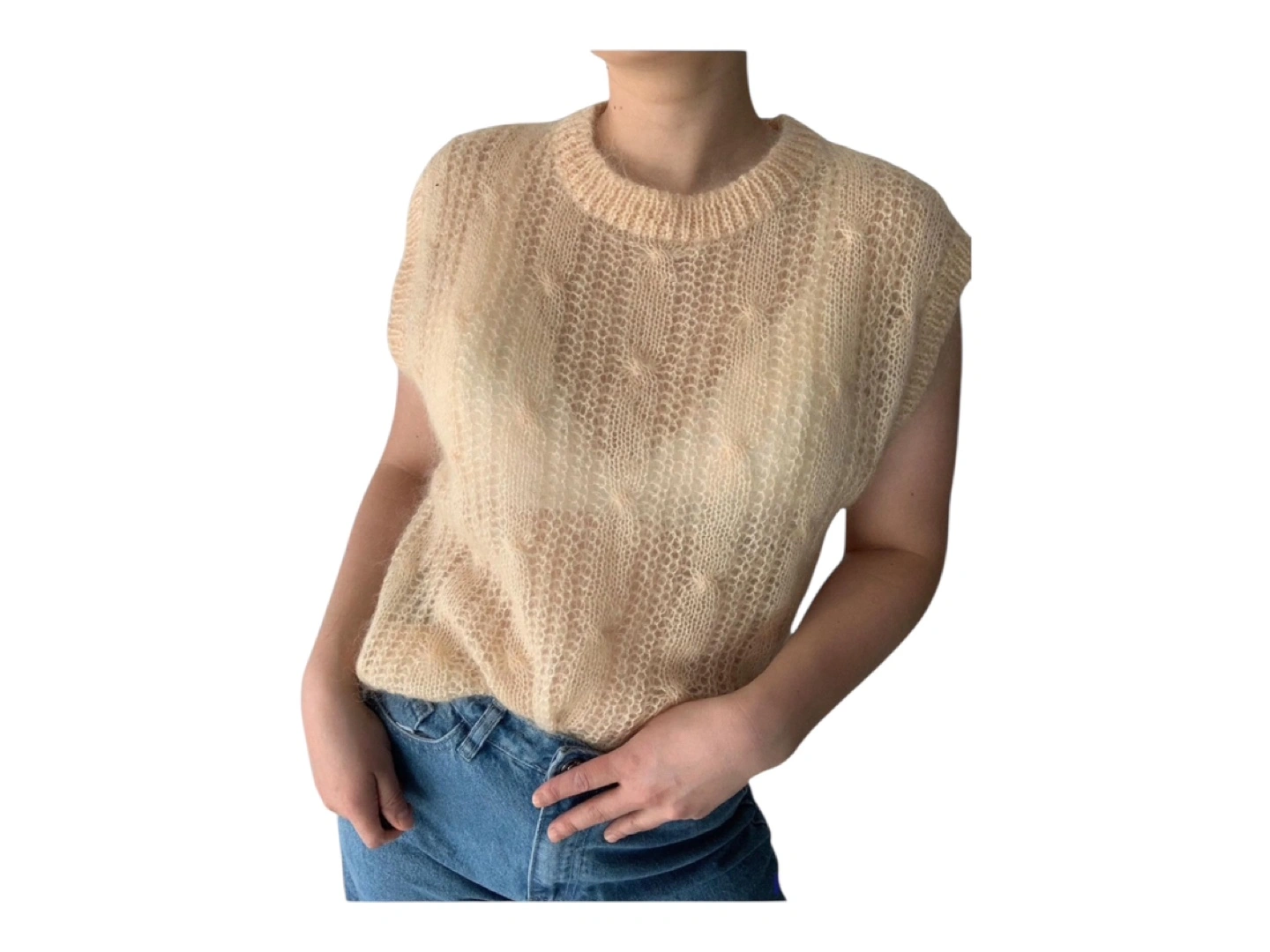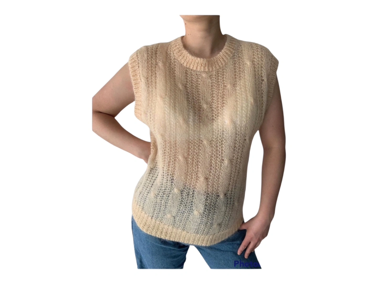 RARE Vintage 80s Hand Knit Oversized Wool Hand Knit Sleeveless Vest Cream S/M/L
