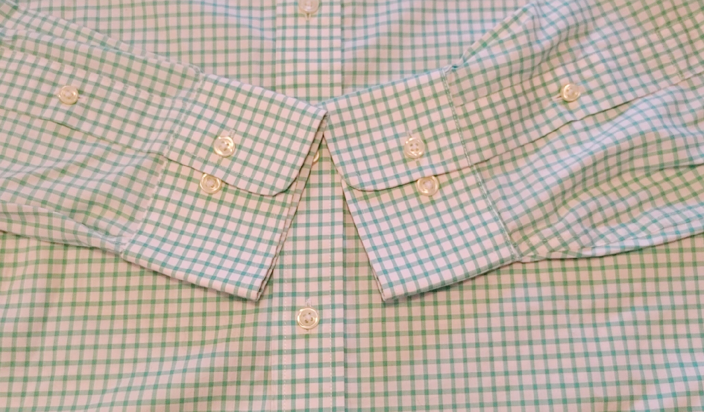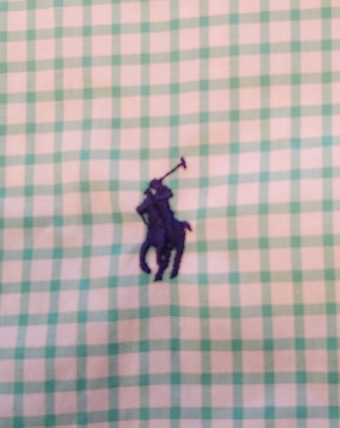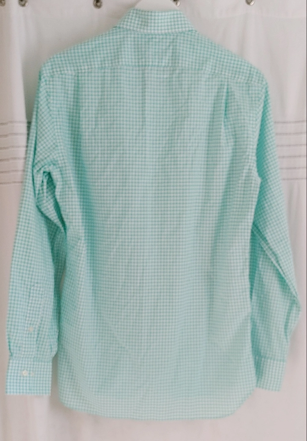 Men's size 15 Polo Ralph Lauren shirt with a green and white gingham pattern. Mint condition still with tags. New never worn. All buttons present with extras and collar tags. Smoke free home pick up Mt.Brydges cash only.