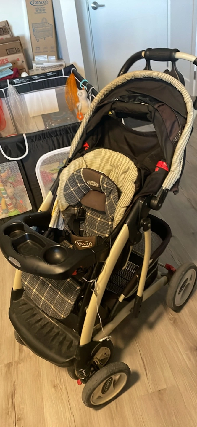 20Selling a Graco stroller. It's in good condition and ready for a new home! It features a convenient tray for snacks and drinks, and a comfortable seat for your little one. Perfect for walks in the park or trips to the store