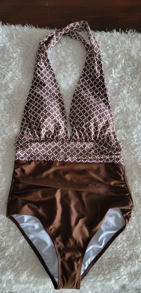 Selling a brand new one-piece swimsuit (tag still attached) in a lovely brown colour! It features a halter neck and a flattering design. Perfect for the summer season!