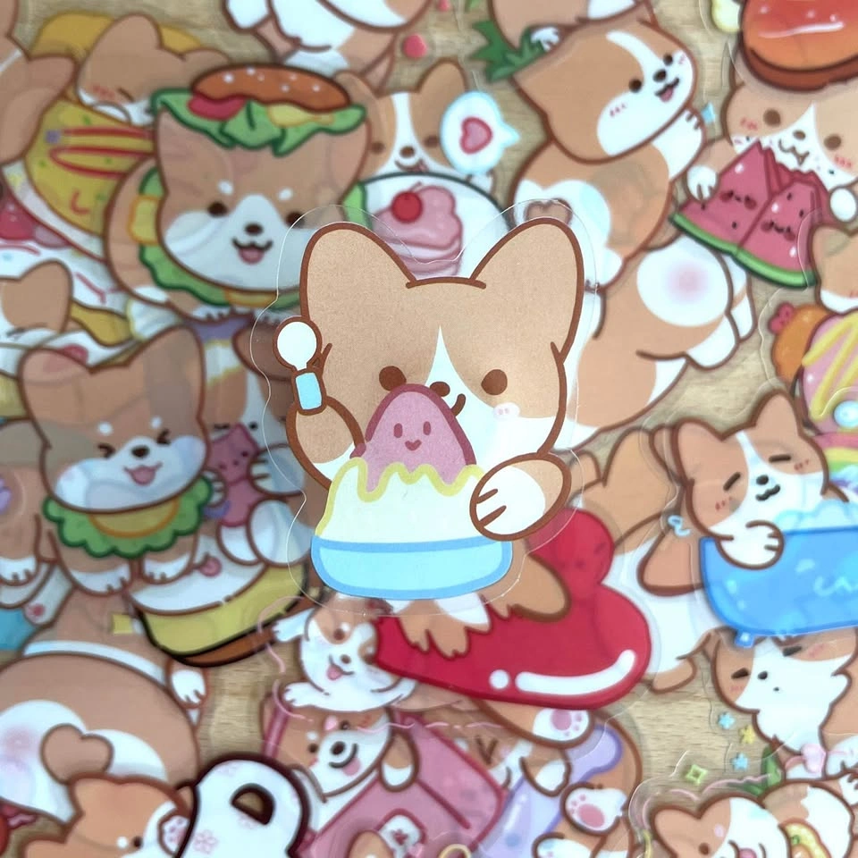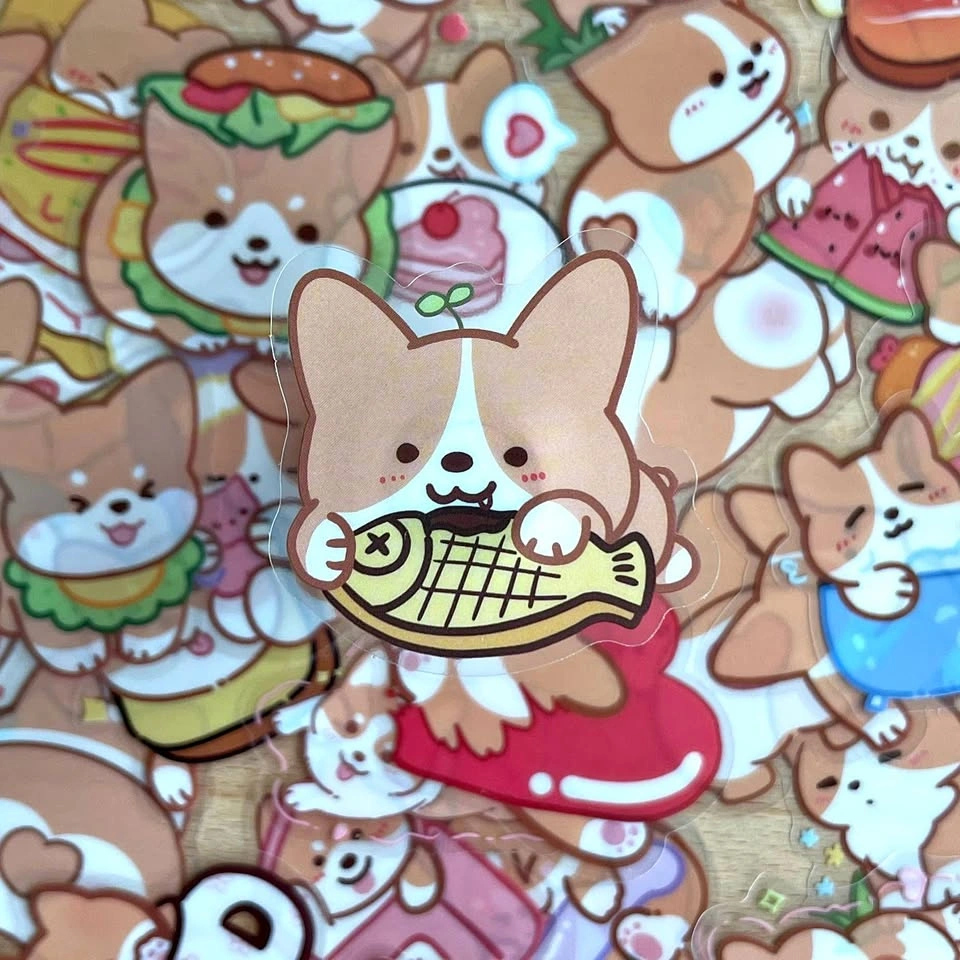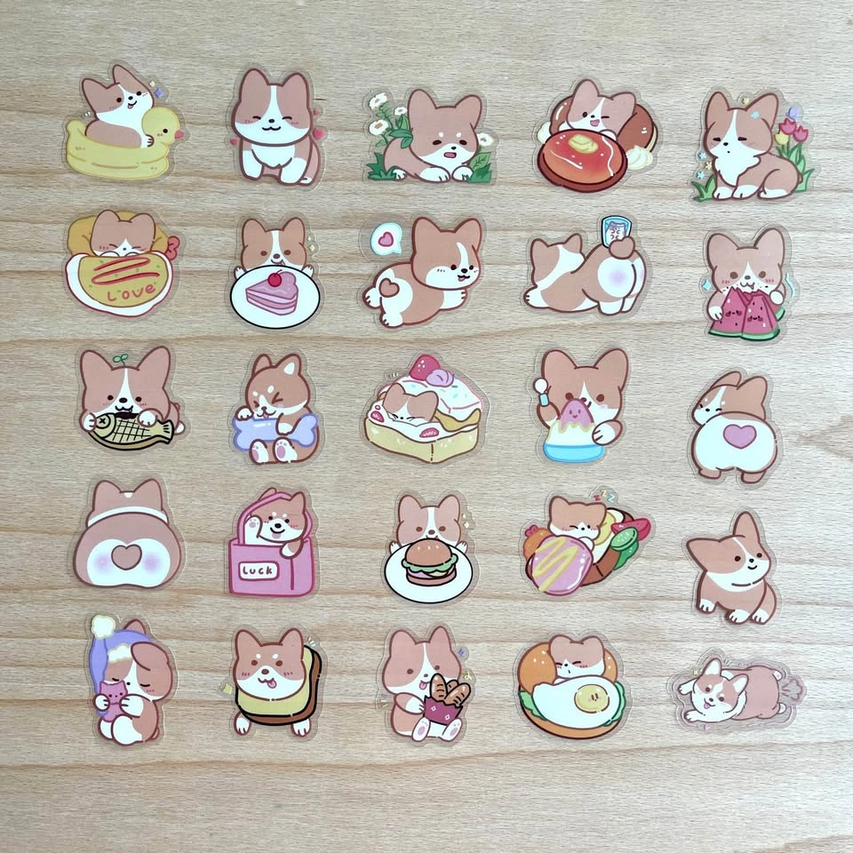 Pack of 50 Cute Corgi Dogs Transparent Stickers