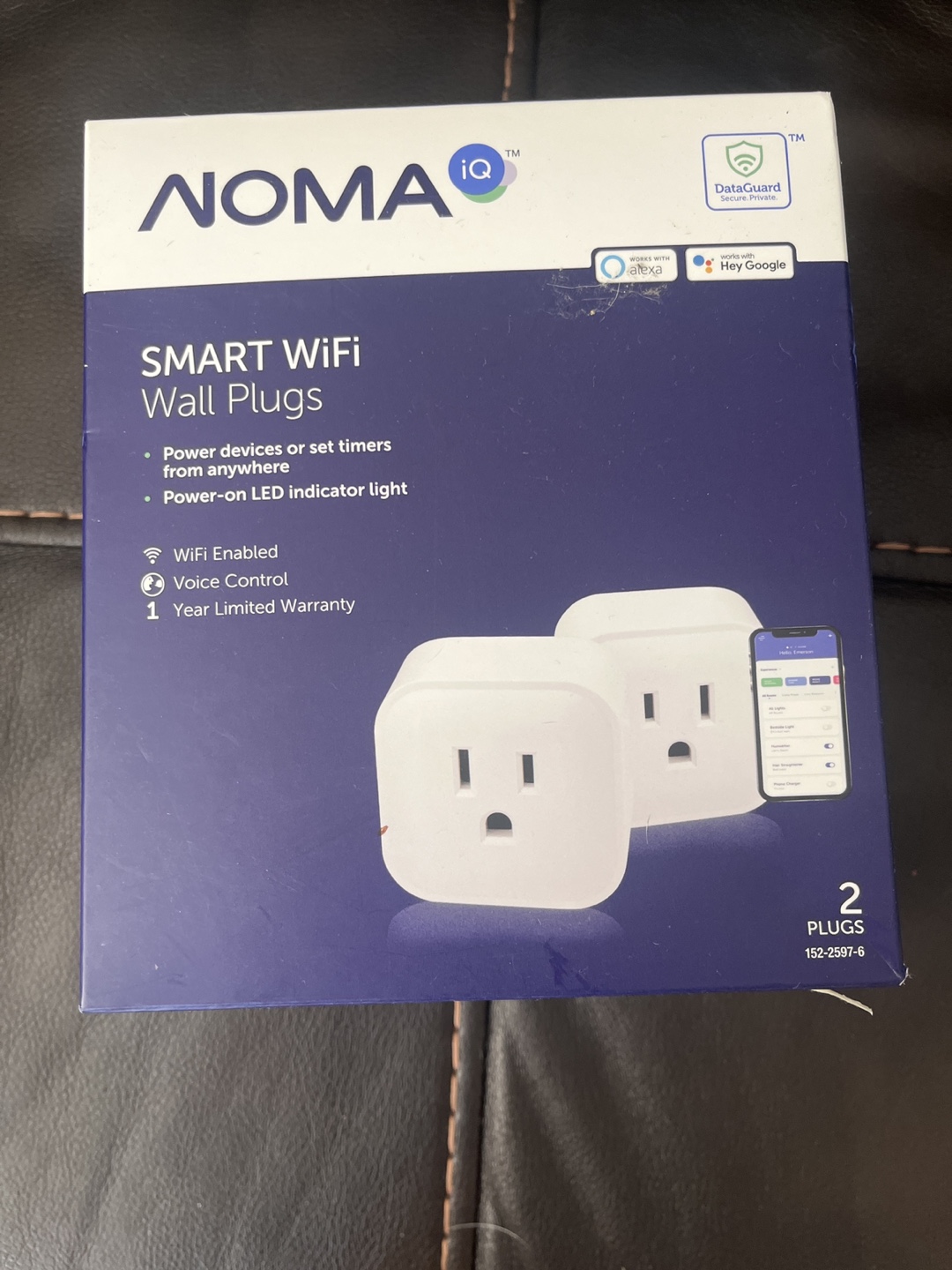 Selling a brand new, unopened 2-pack of NOMA Smart WiFi Wall Plugs! These plugs let you control your devices from anywhere and set timers. They also have a power-on LED indicator light. Works with Alexa and Google Assistant I bought two many of these