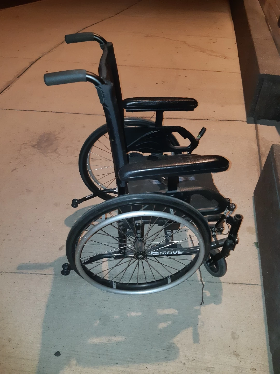 Selling a Quickie wheelchair in black. It is in good condition and ready for use if you buy a cushion. Perfect for someone in need of mobility assistance! No cushion. you have to buy a cushion. Easily fold for transportation.