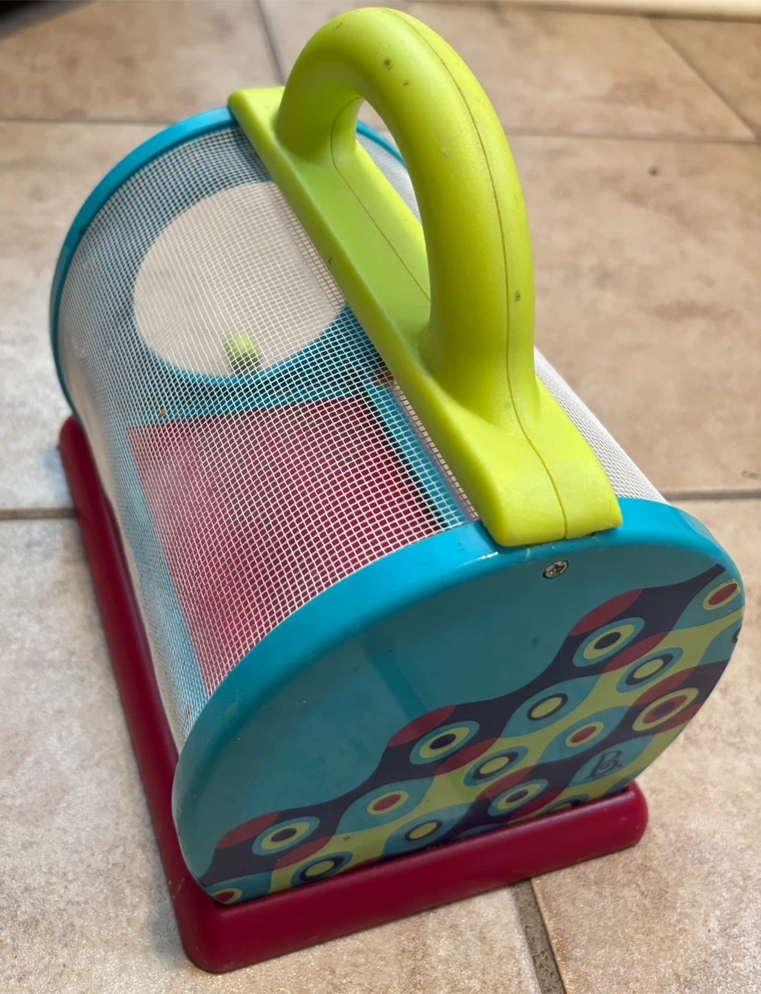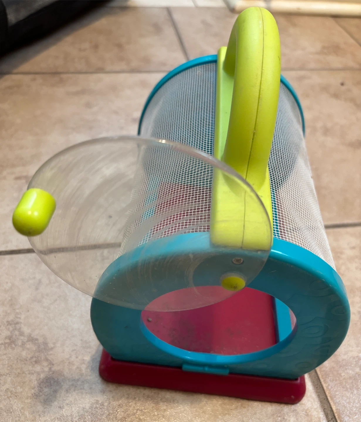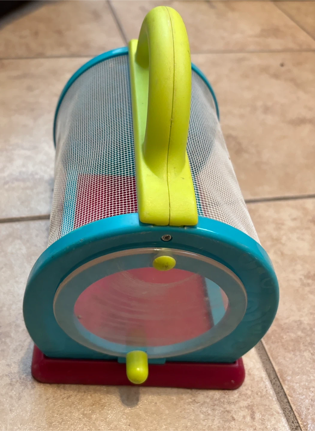 97This Bug Bungalow is perfect for little explorers .. can also use for carrying small pet! Measurements 5.5” x 7.5”. It's in great condition and ready for new adventures. This cute bug catcher is colourful and fun for kids to use while exploring the outdoors