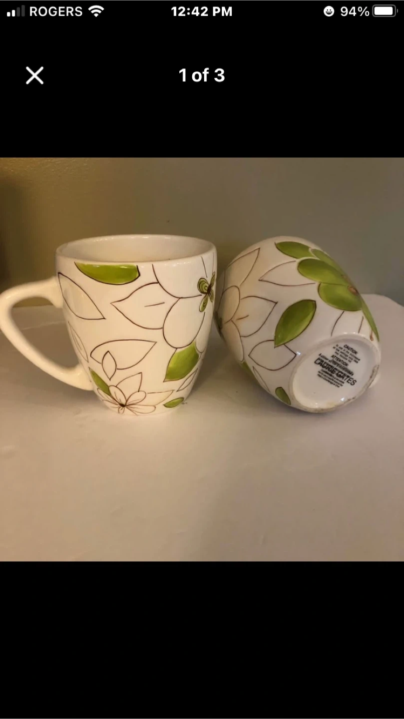 Here are two Laurie Gates mugs with a lovely floral design! They're perfect for enjoying your morning coffee or tea