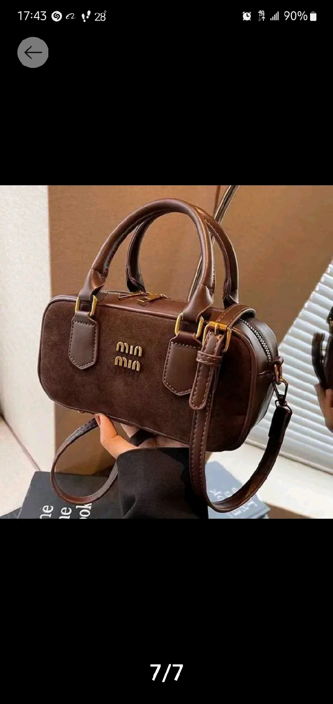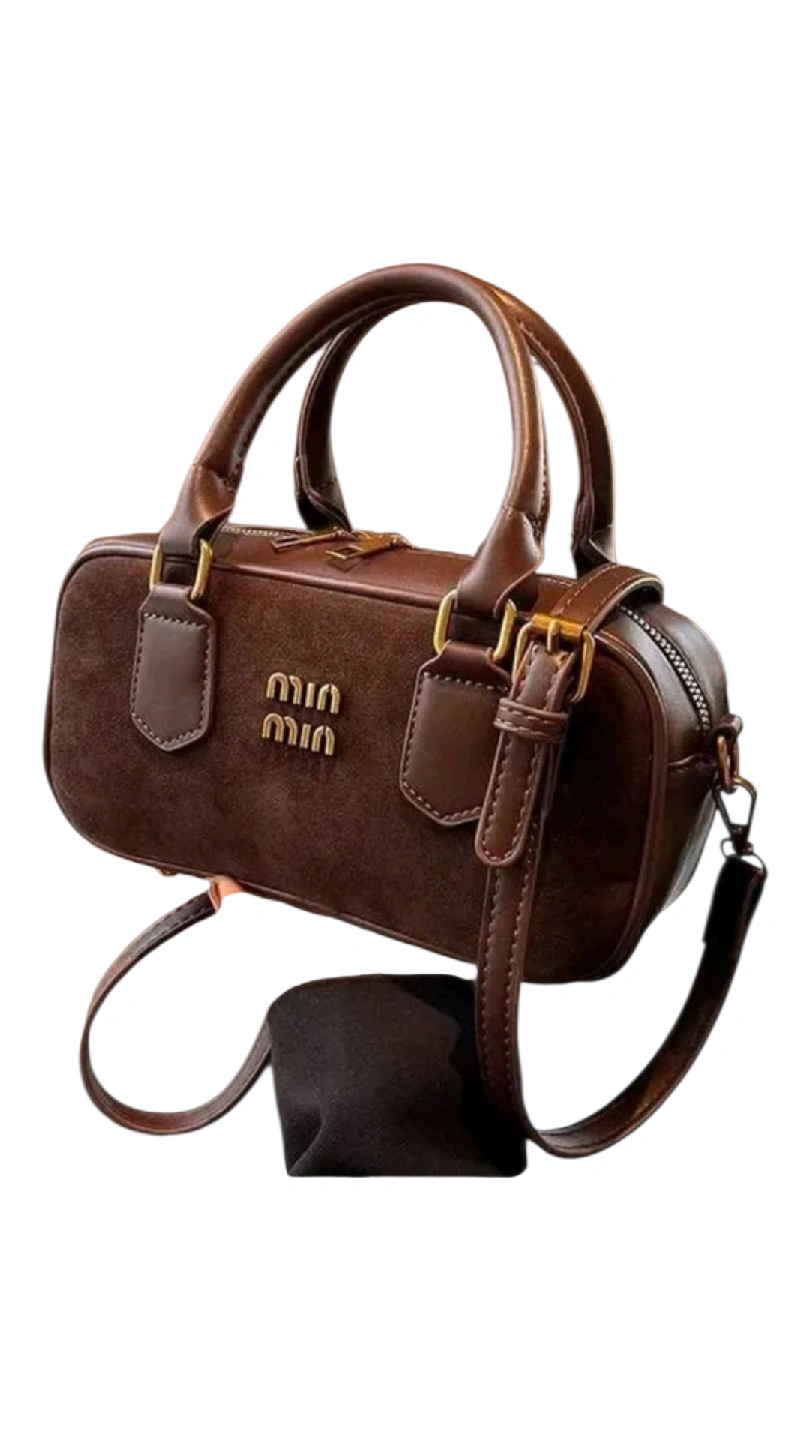 A stylish Miu Miu handbag in a lovely brown colour! The exterior appears to be made of suede. It has a convenient shoulder strap too!