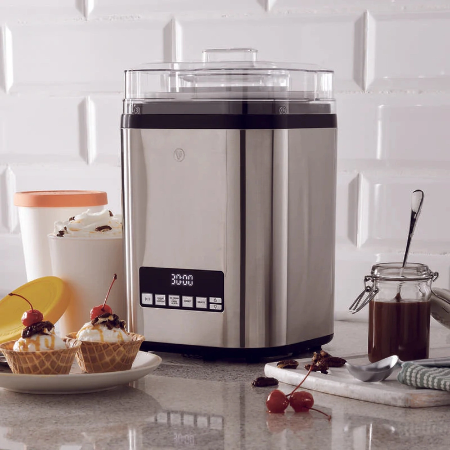 Make delicious ice cream, gelato, sorbet, and frozen yogurt at home with the Vida by PADERNO Digital Ice Cream Maker, 4-in-1 Ice Cream & Frozen Treat Maker, Stainless Steel, 1.9L! It's easy to use and perfect for creating your own custom frozen treats