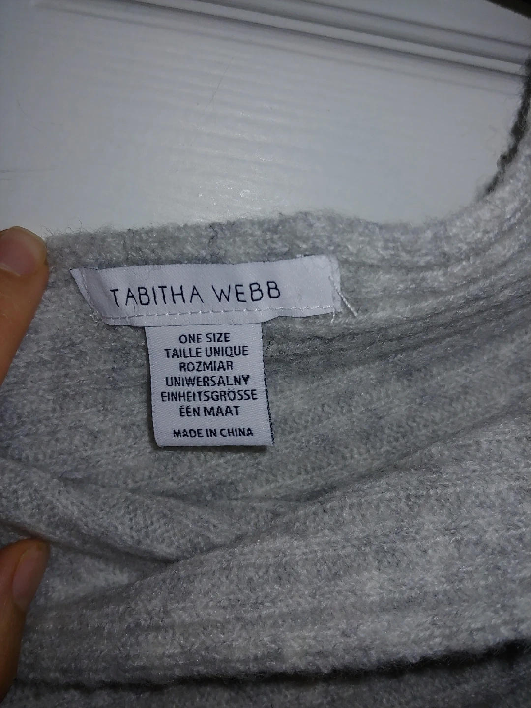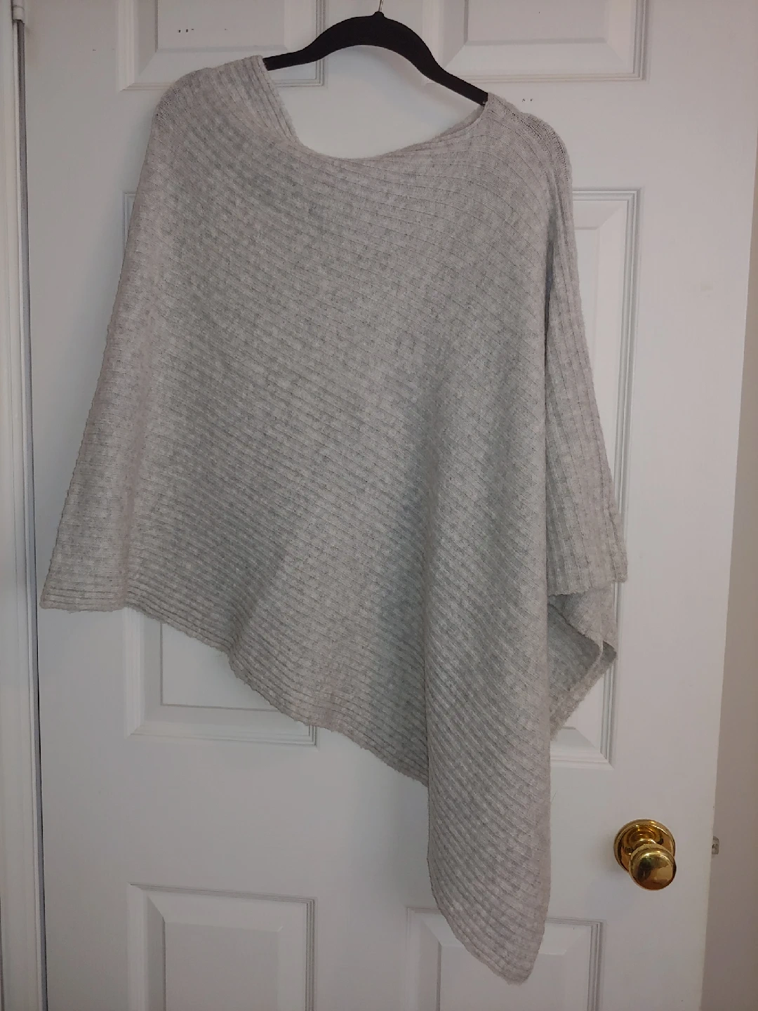 Selling a cozy Tabitha Webb poncho in grey. It's a one-size-fits-all piece, perfect for layering. I bought it to wear during pregnancy instead of a coat but never ended up wearing it.
