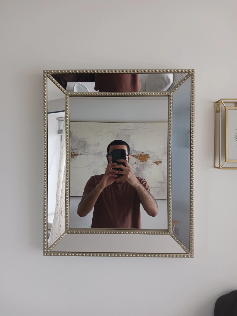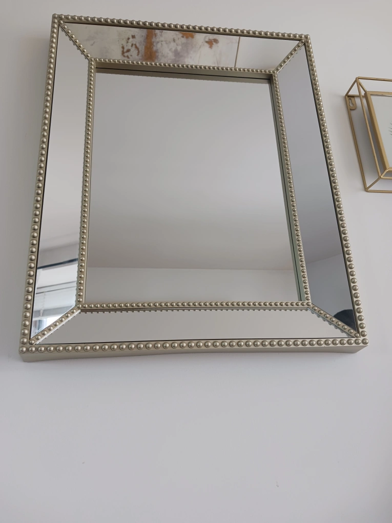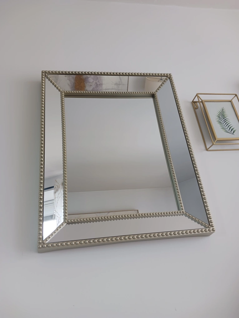 Give your space a touch of class with this beautiful wall mirror. The beveled edges and studded border design add elegance and depth, making it perfect for bedrooms, living rooms, entryways, or bathrooms.