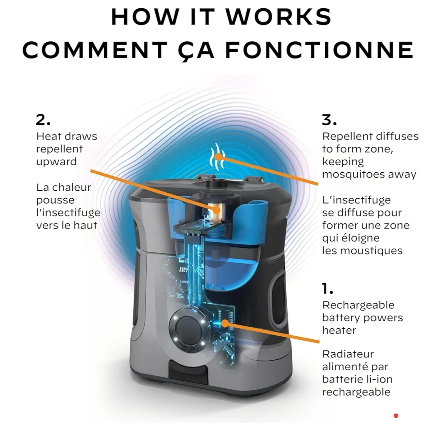 Keep those pesky mosquitoes away with this Thermacell Mosquito Repeller! It creates a 20ft zone of protection. It's easy to use and people & pet friendly. Comes with: - 1 Repeller - 1 Refill (12 hrs) - 1 Charging cable