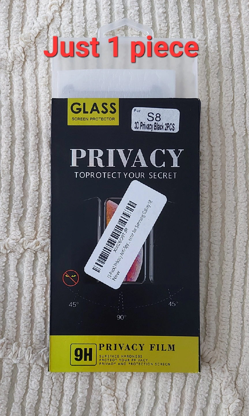 Selling a new privacy screen protector for the Samsung Galaxy S8. This is a single -pack of 3D privacy black screen protectors. Keep your screen protected and your secrets safe!