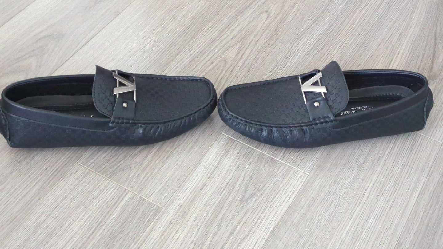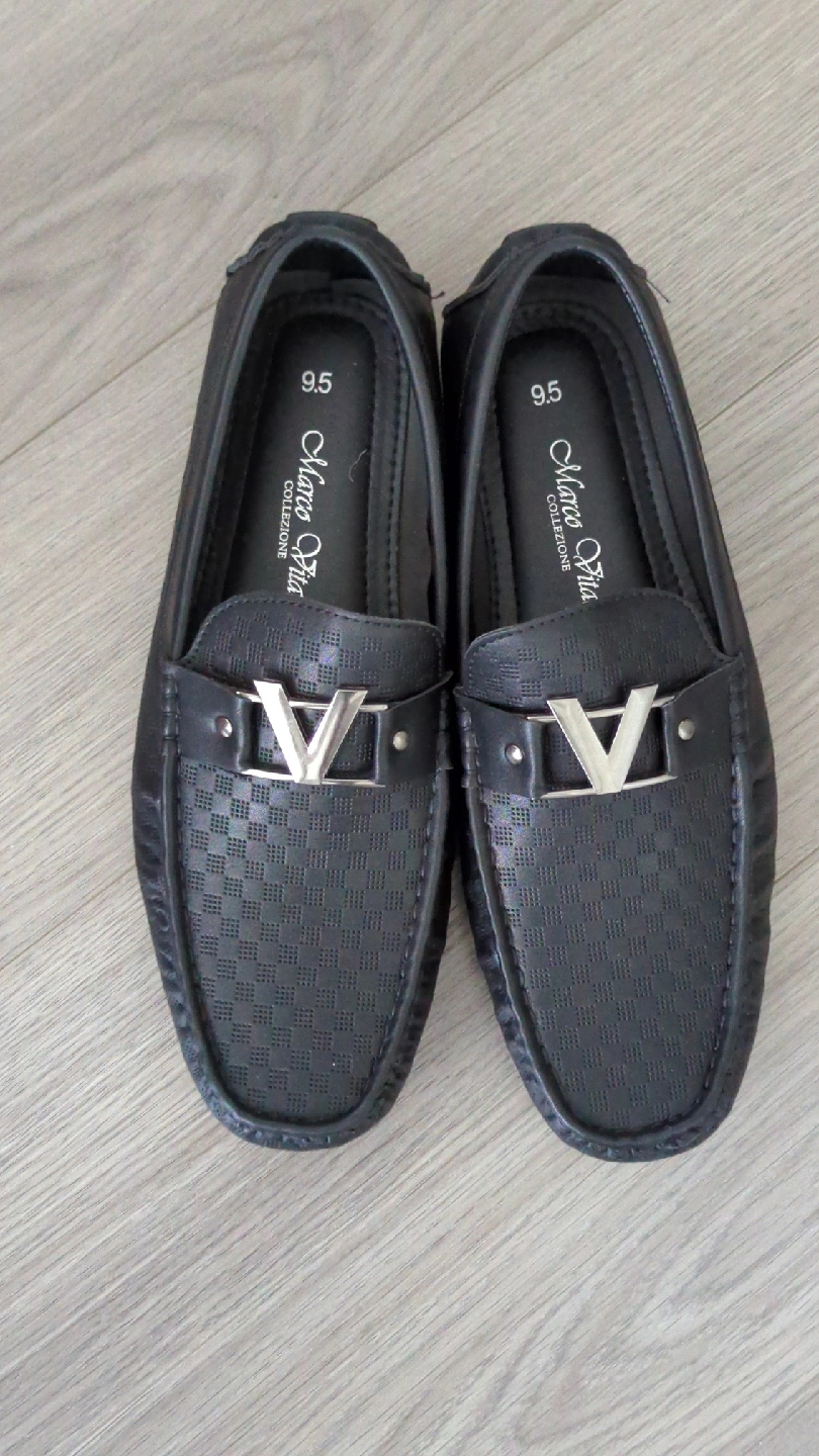 Selling a pair of Marco Vita Collection loafers in black! They are a men's size 9.5. The shoes have a silver 'V' design on the front. They are brand new, never-worn condition and ready for a new home!