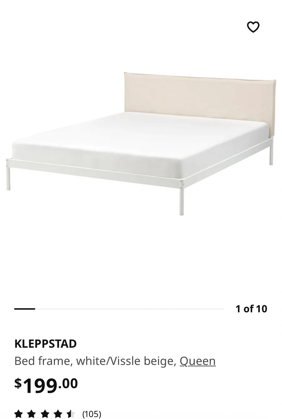 BED FRAME (Kleppstad) has a stylish and modern design with a metal bed frame and a cozy textile washable headboard. OP $199