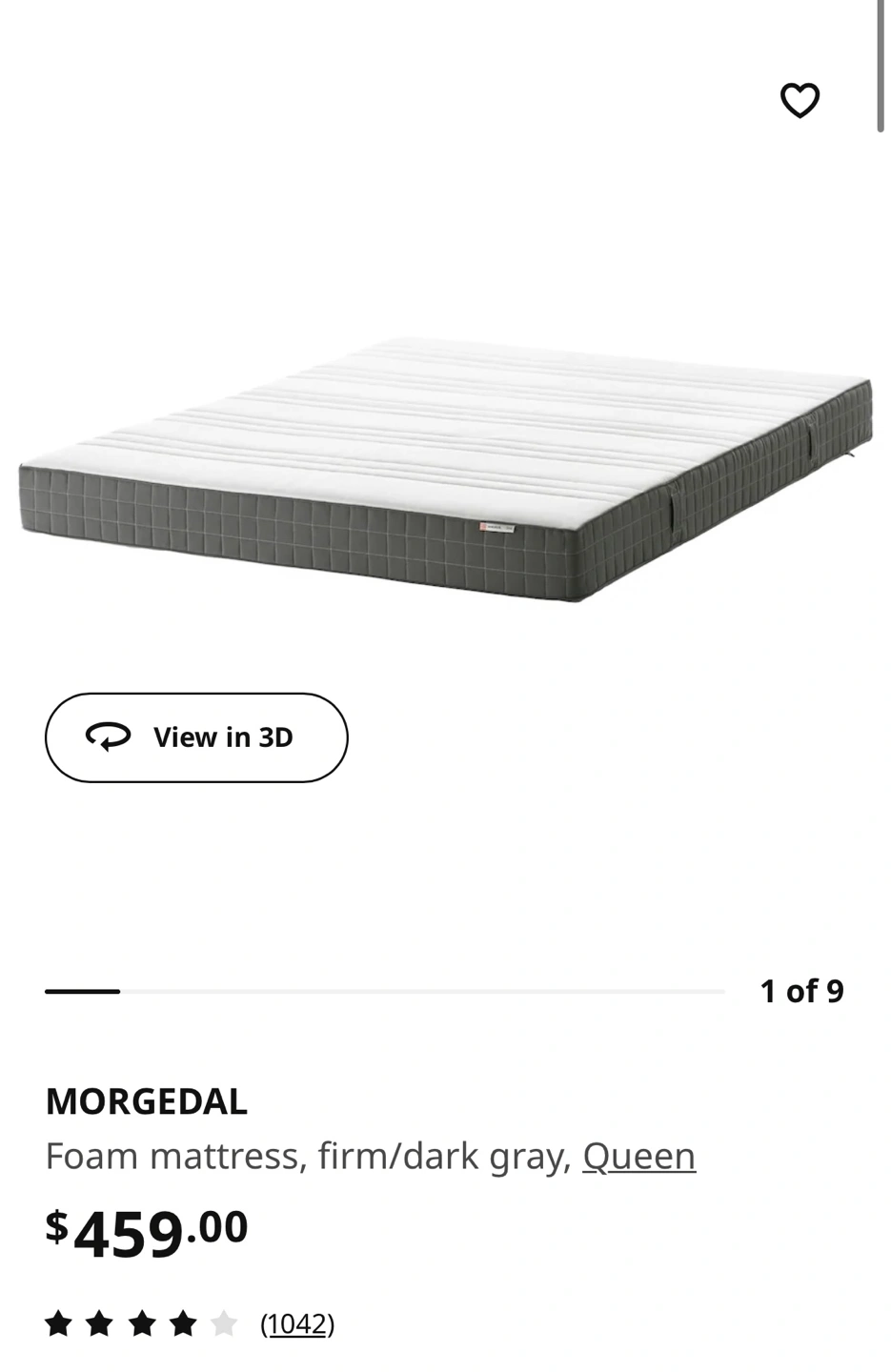 MATTRESS (Morgedal) foam mattress, absorbs the movements of your body giving you all-over support and a restful sleep. Comfort zones provide pressure relief and support exactly where you need it. OP $459