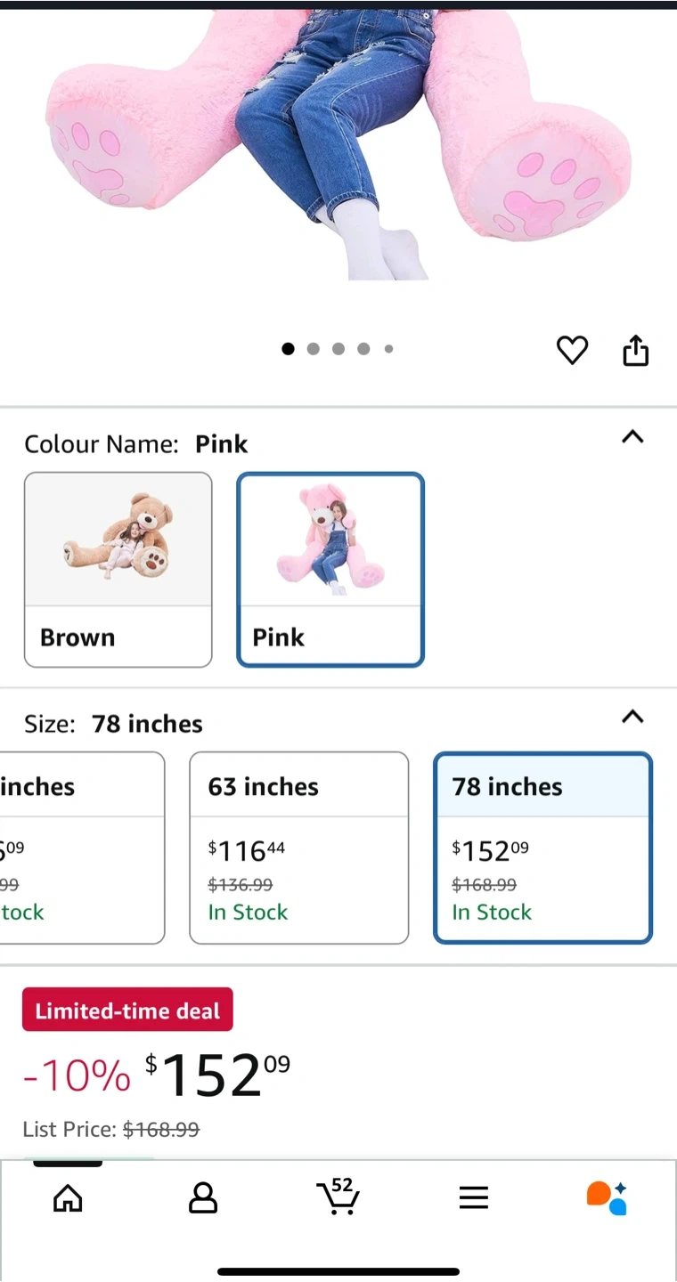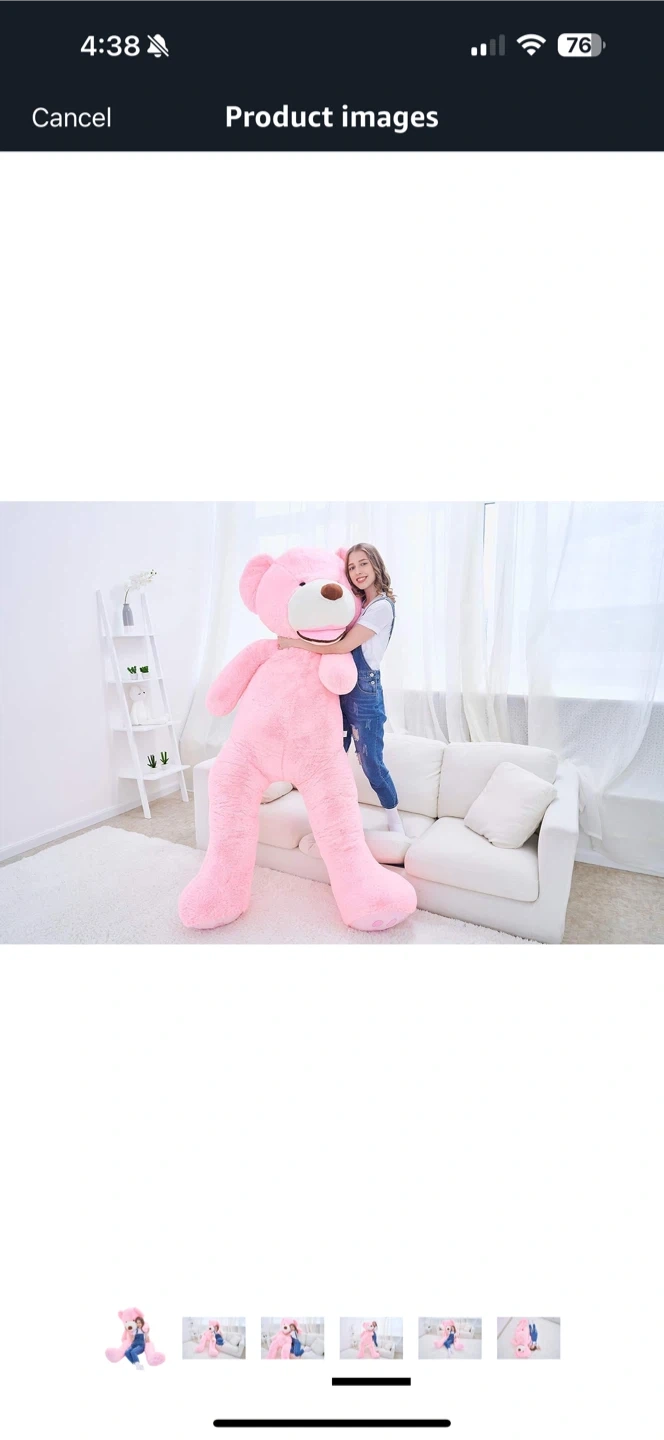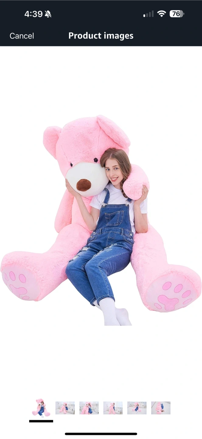 Selling a super cuddly pink teddy bear! It measures 78 inches tall, perfect for snuggling. It's in great condition and ready for a new home!