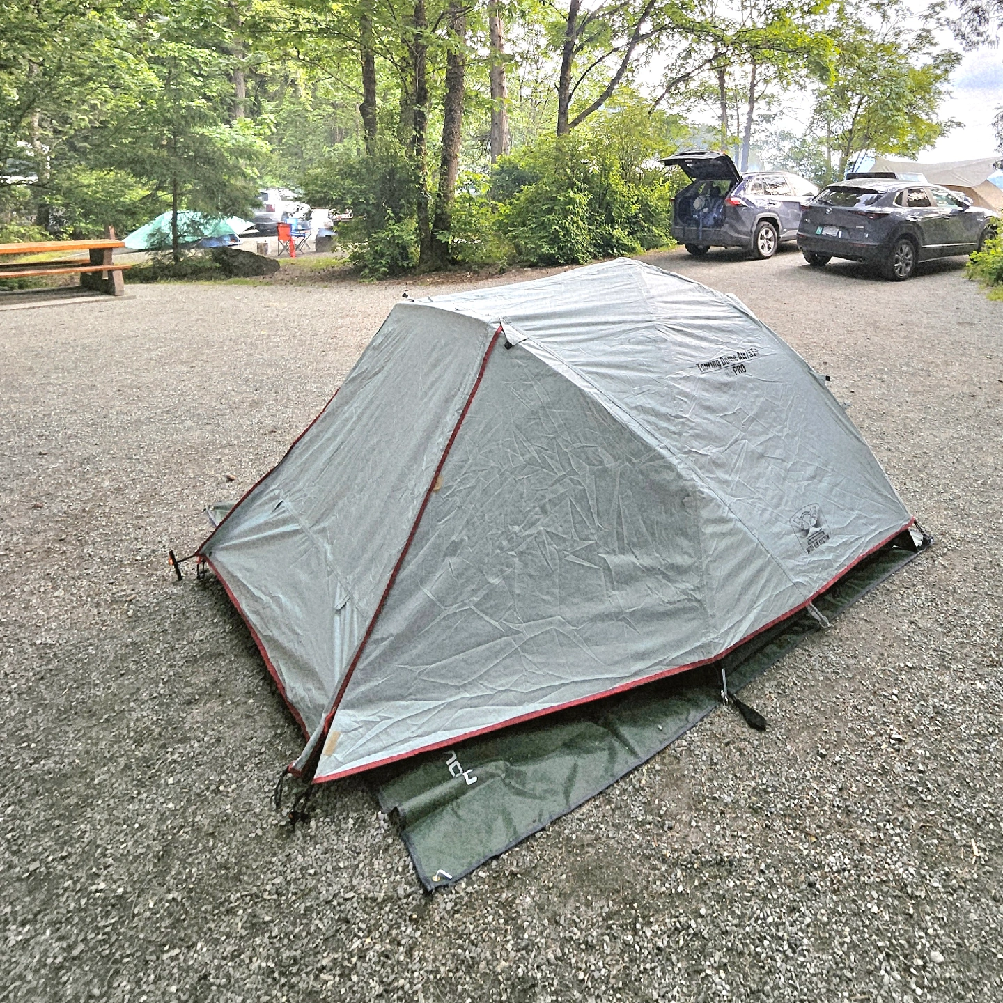109Tent Specifications Overall size: approx. 345 × 210 × 120 (H) cm Inner size: approx. 210 × 180 × 110 (H) cm Packed size: approx. φ21 × 49 cm Weight: approx. 5.9 kg Water resistance: Flysheet: approx. 3,000 mm Floor: approx. 1,500 mm Capacity: for 2 persons With pegs,ropes and carry bag I also brought the tarps on amazon and one is from coleman. i can give it out for free. selling my camping things as i dont need it anymore. Only for pick up in royal oak station