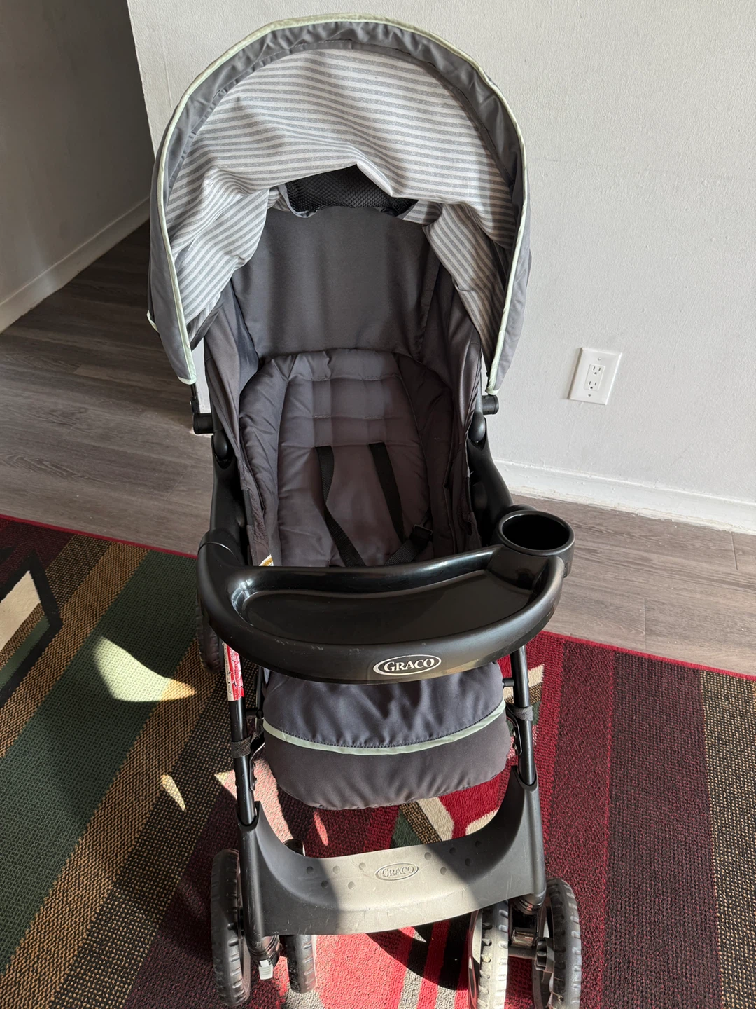 Selling a Graco stroller that's in great shape! It's a reliable and sturdy stroller, perfect for taking your little one on outings. Features a convenient cup holder and a comfortable seat for your child. Ready for a new home!