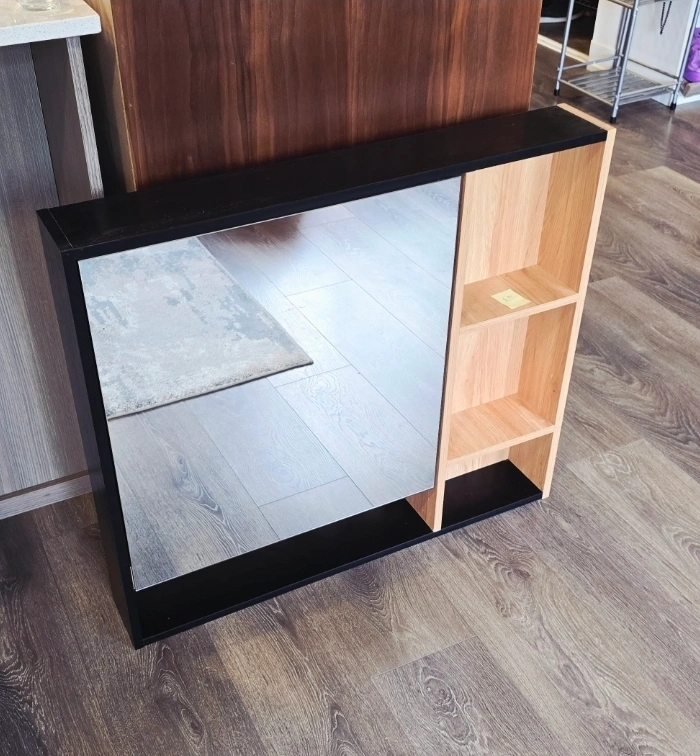 Selling a bathroom vanity with a mirrored door and open shelving. It's in good condition and ready to be installed in your bathroom! Perfect for storing toiletries and keeping your space organized. Must Go before September 15th.