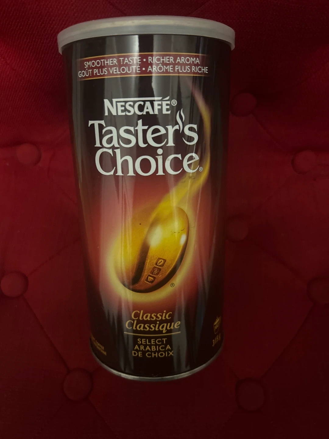 Big tin (315g) Selling a can of Nescafe Taster's Choice Classic coffee. It's the Select Arabica de Choix, offering a smoother taste and richer aroma. Perfect for your morning brew!