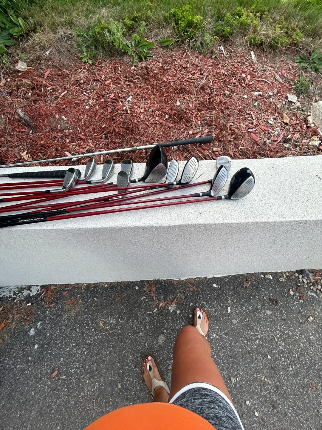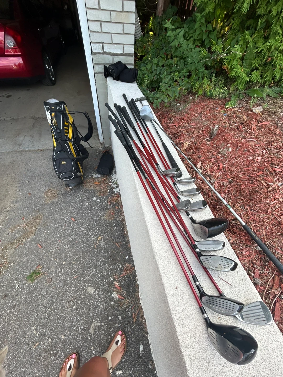 Selling a used Cobra golf club set, complete with a bag. The set appears to be in good condition and includes a variety of clubs. Perfect for someone looking to get into golf, left handed clubs!