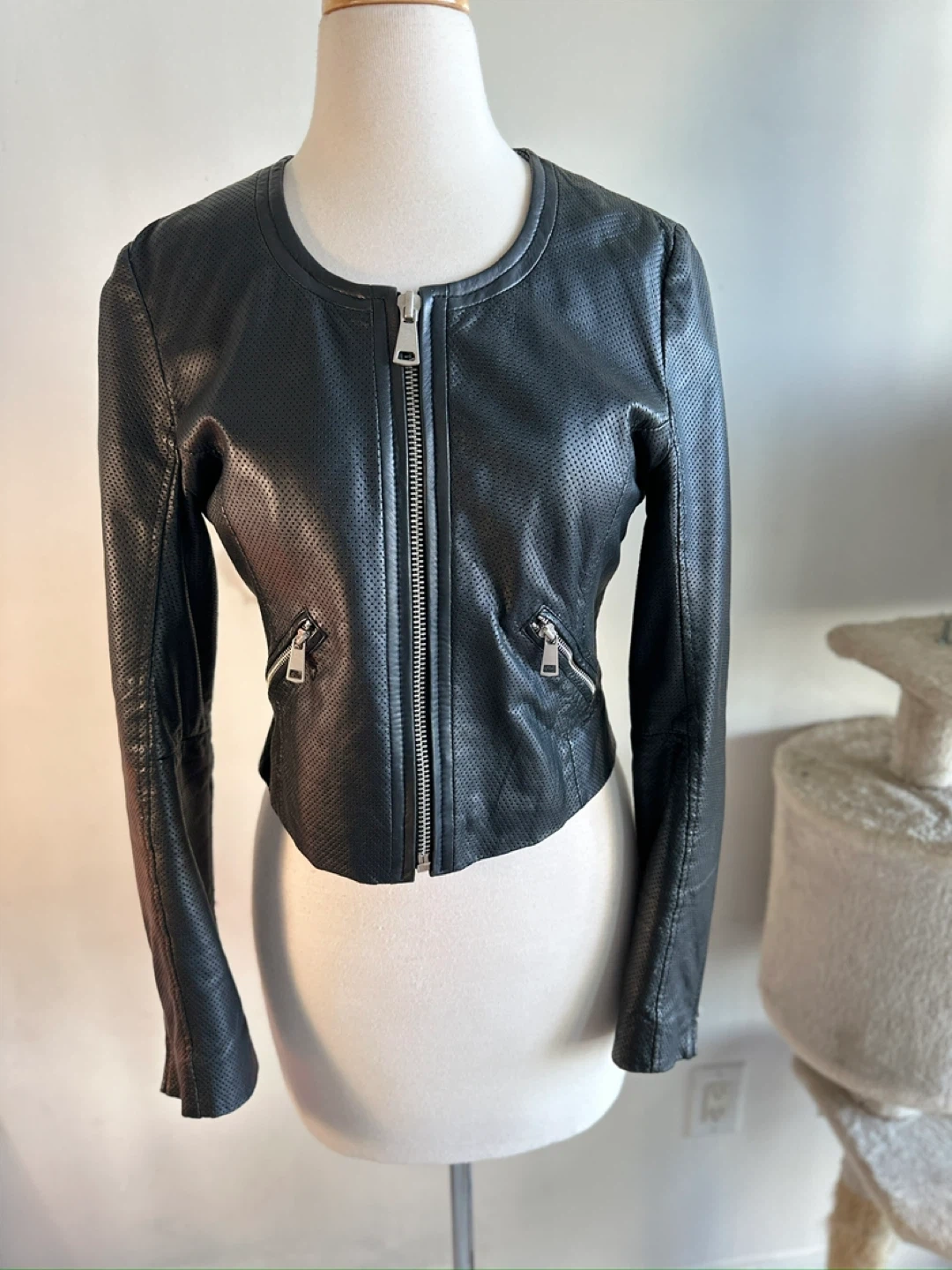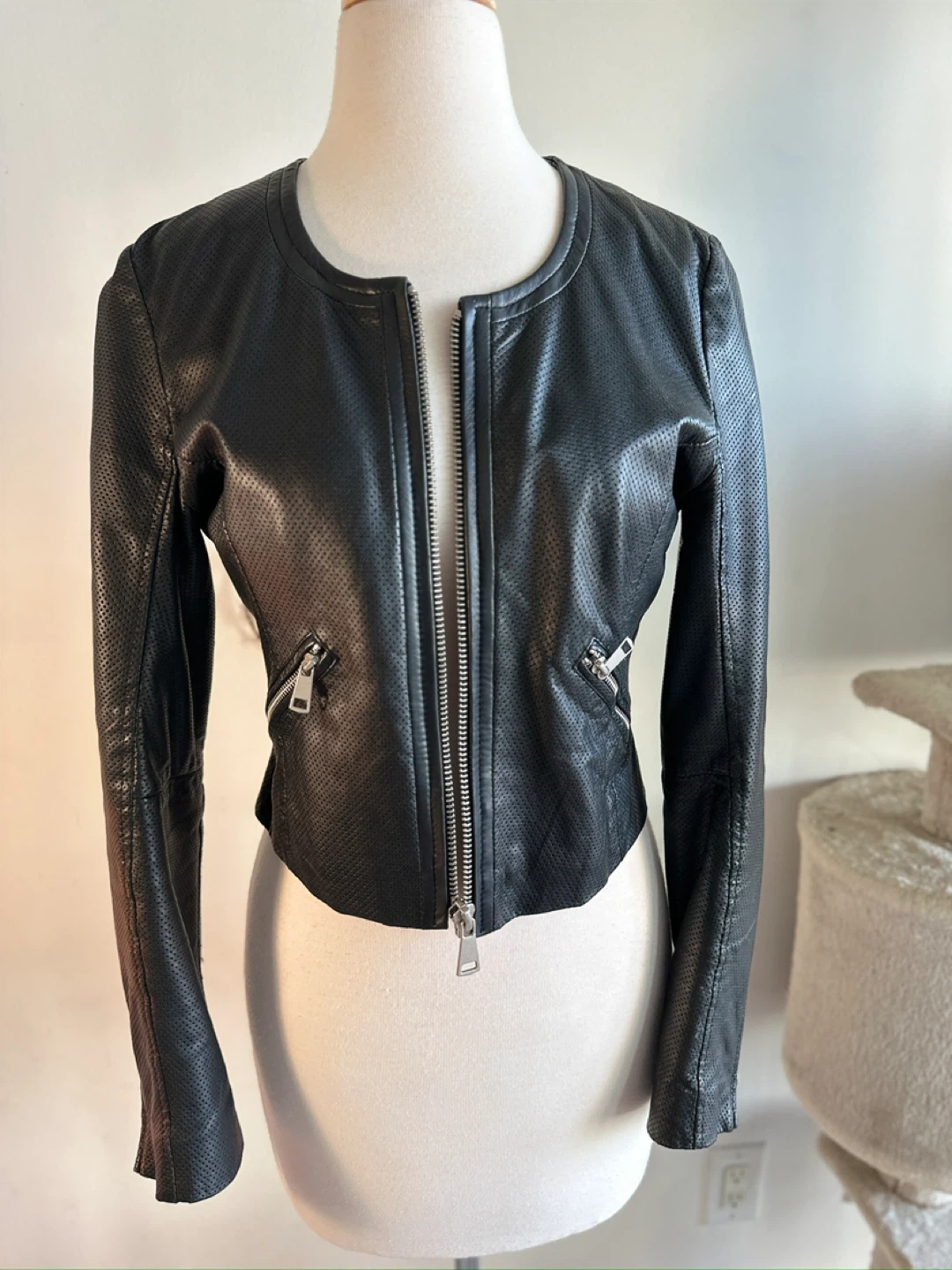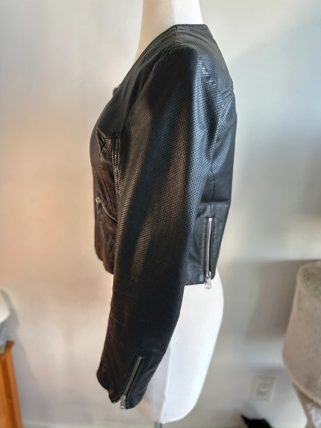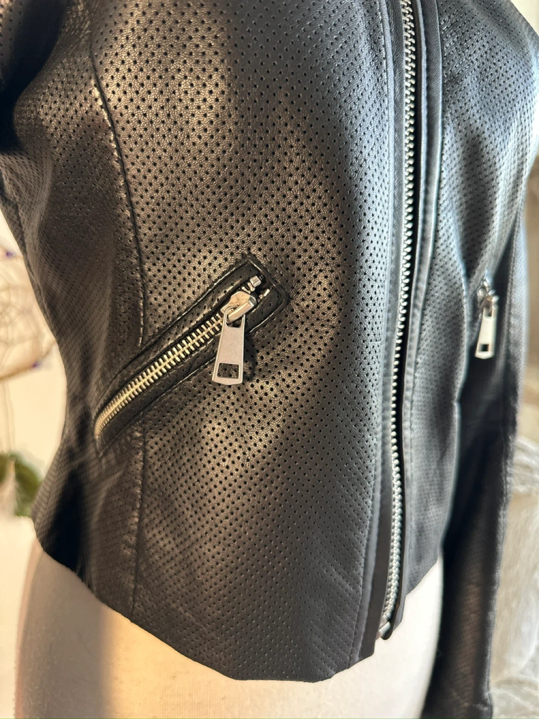1000+Authentic lamb skin proffered leather jacket light and breathable! It features a front zipper closure and zippered pockets. Hugs the body in the right spots! 100% Cotton lining.
