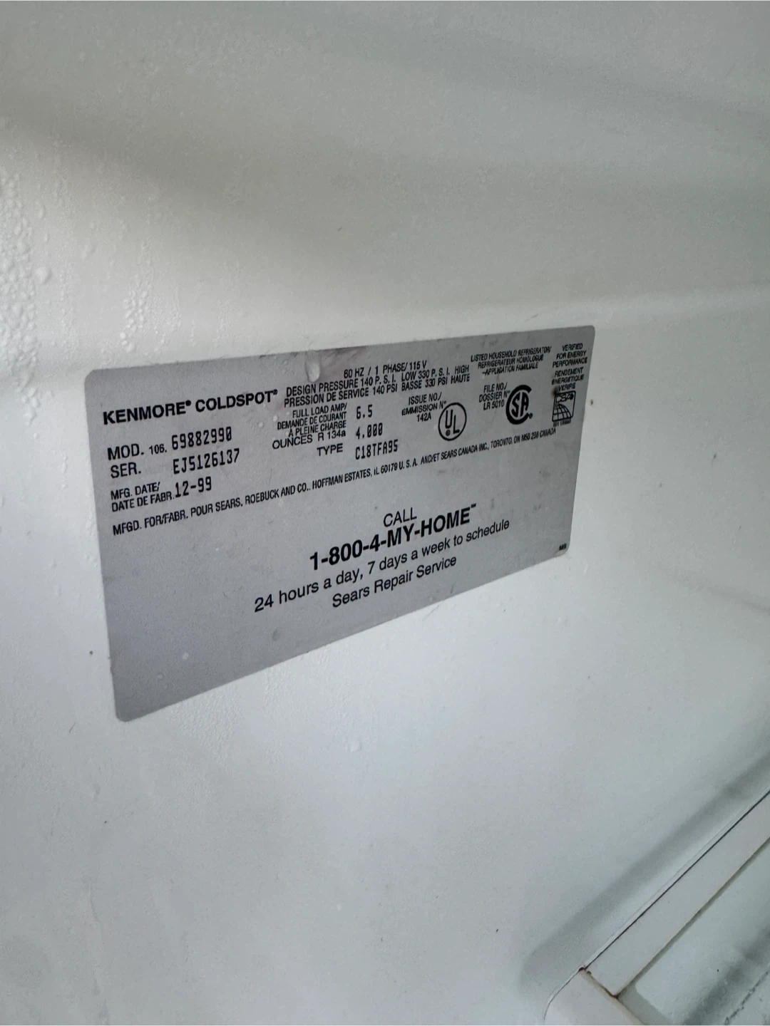 Kenmore Coldspot refrigerator
